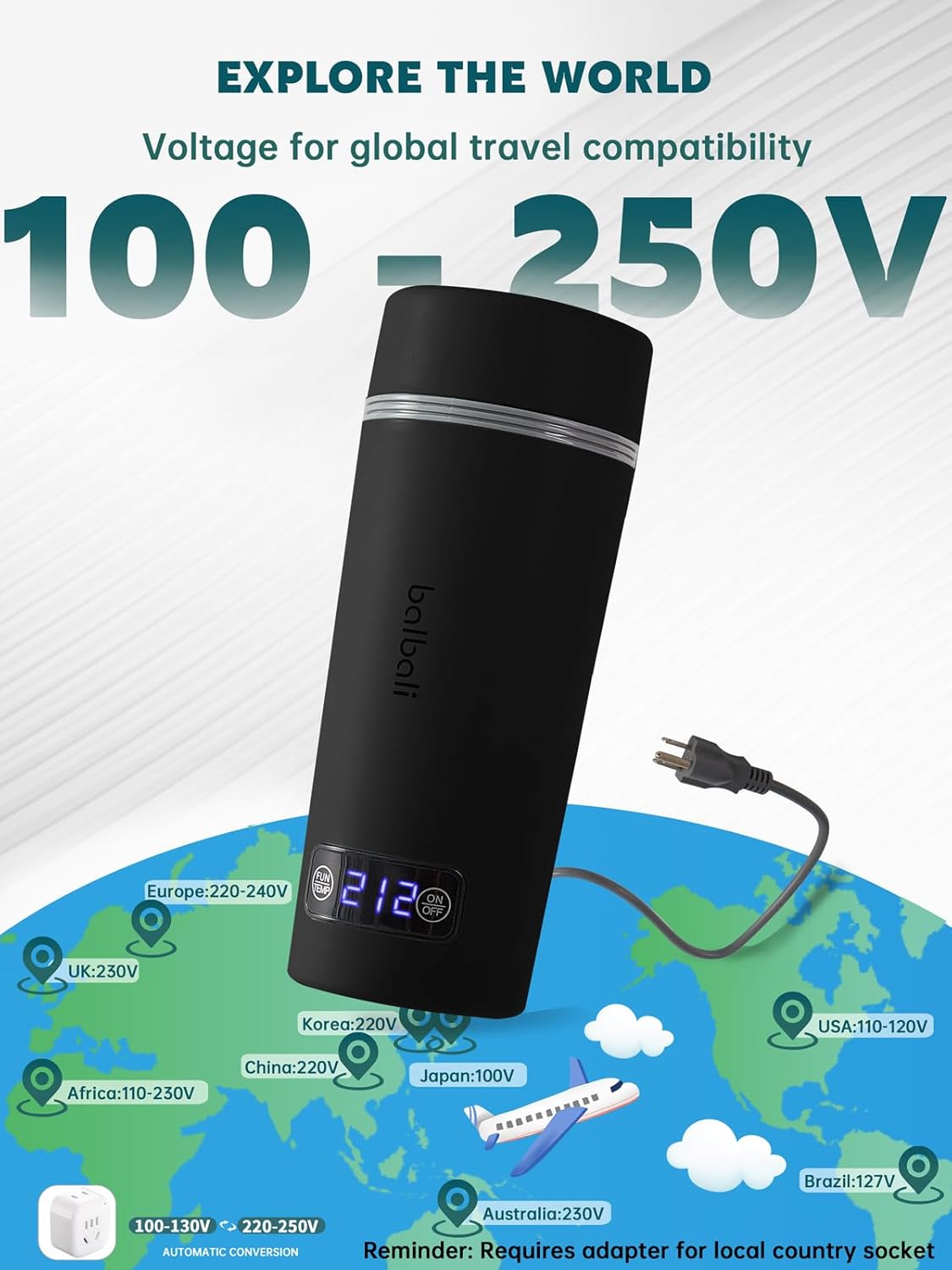 balbali Dual Voltage Travel Kettle 100-250V - 12oz Portable Water Boiler/Warmer/Heater for Boiling Water - 4 Preset Temperature Control Portable Tea Kettle Electric Travel - Black