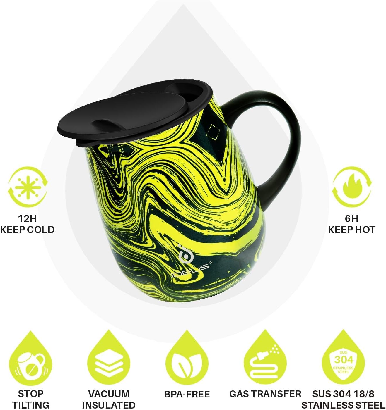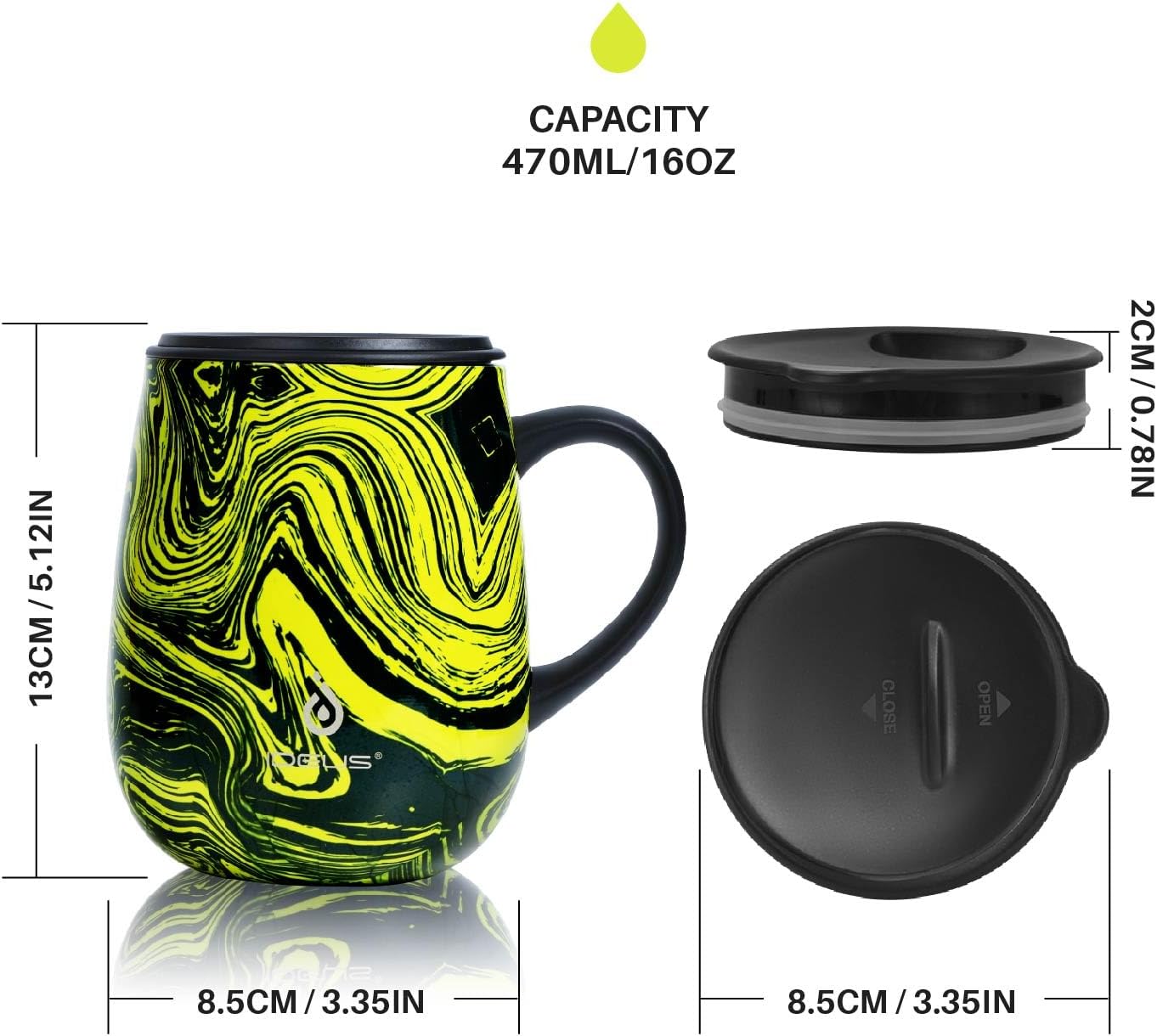 Ideus 16 oz (470 ml) Insulated Coffee Mug with Handle and Lid, Double Wall Stainless Steel Vacuum Thermal Coffee Mug, Travel Coffee Cup Thermal Cup for Home and Office (Yellow Zebra)