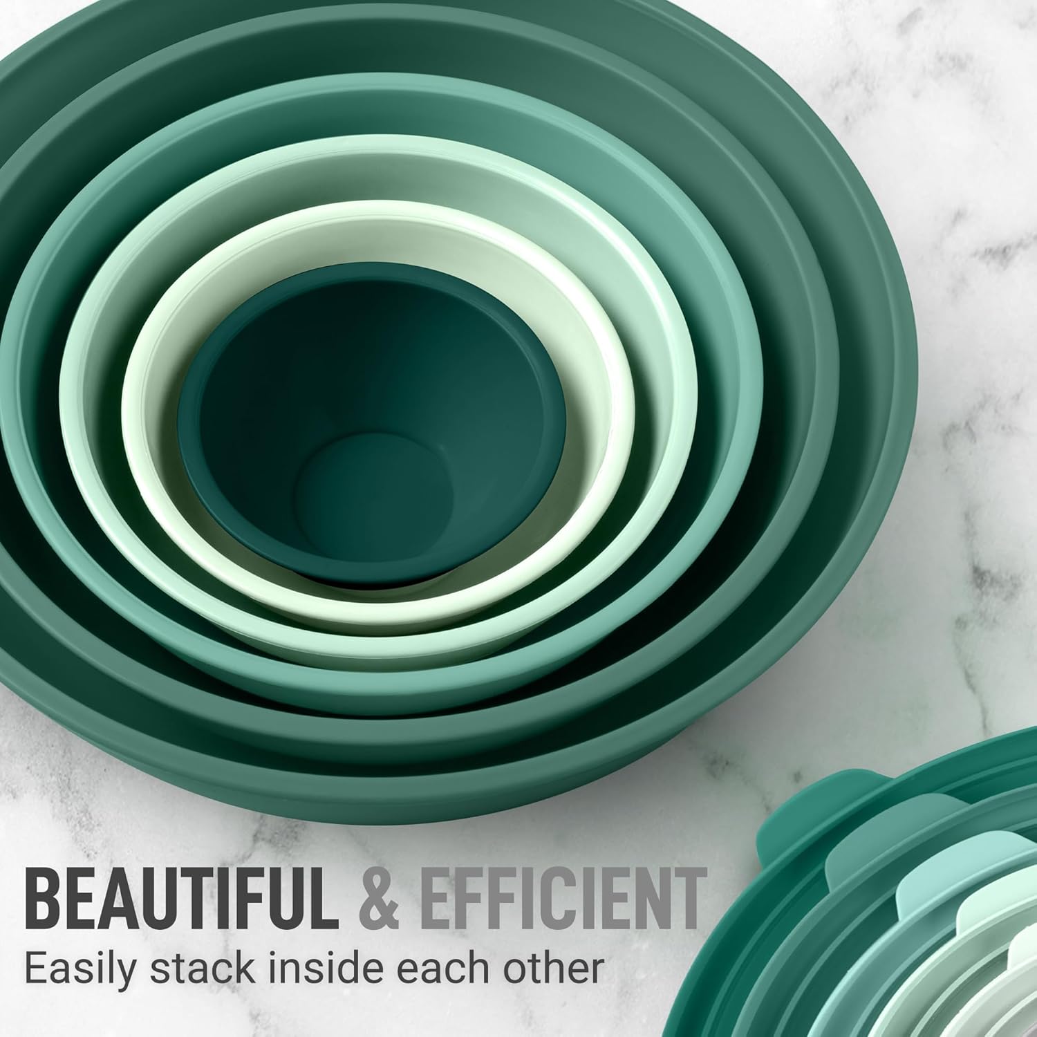 Zulay Kitchen 12-Piece Plastic Mixing Bowl Set - Colorful Nesting Bowls with Lids - Microwave & Freezer Safe (Teal Ombre)