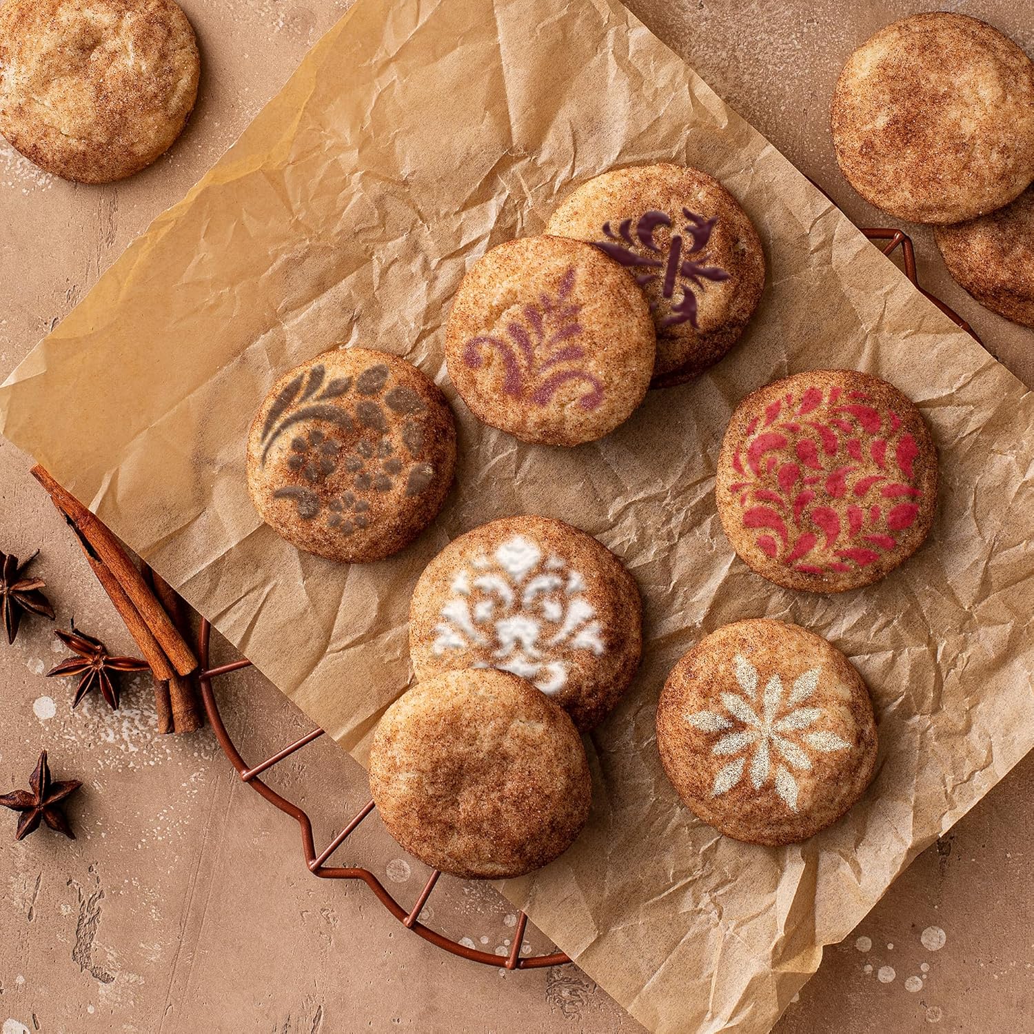 - DIFFERENT SIZES TO CHOOSE: Each 14Pcs. cookie baking stencils set consists of 7 patterns 4.3” in diameter and 7 patterns 2.8” in diameter. These baking stencils are ideal for decorating coffee, cookies and even cakes.