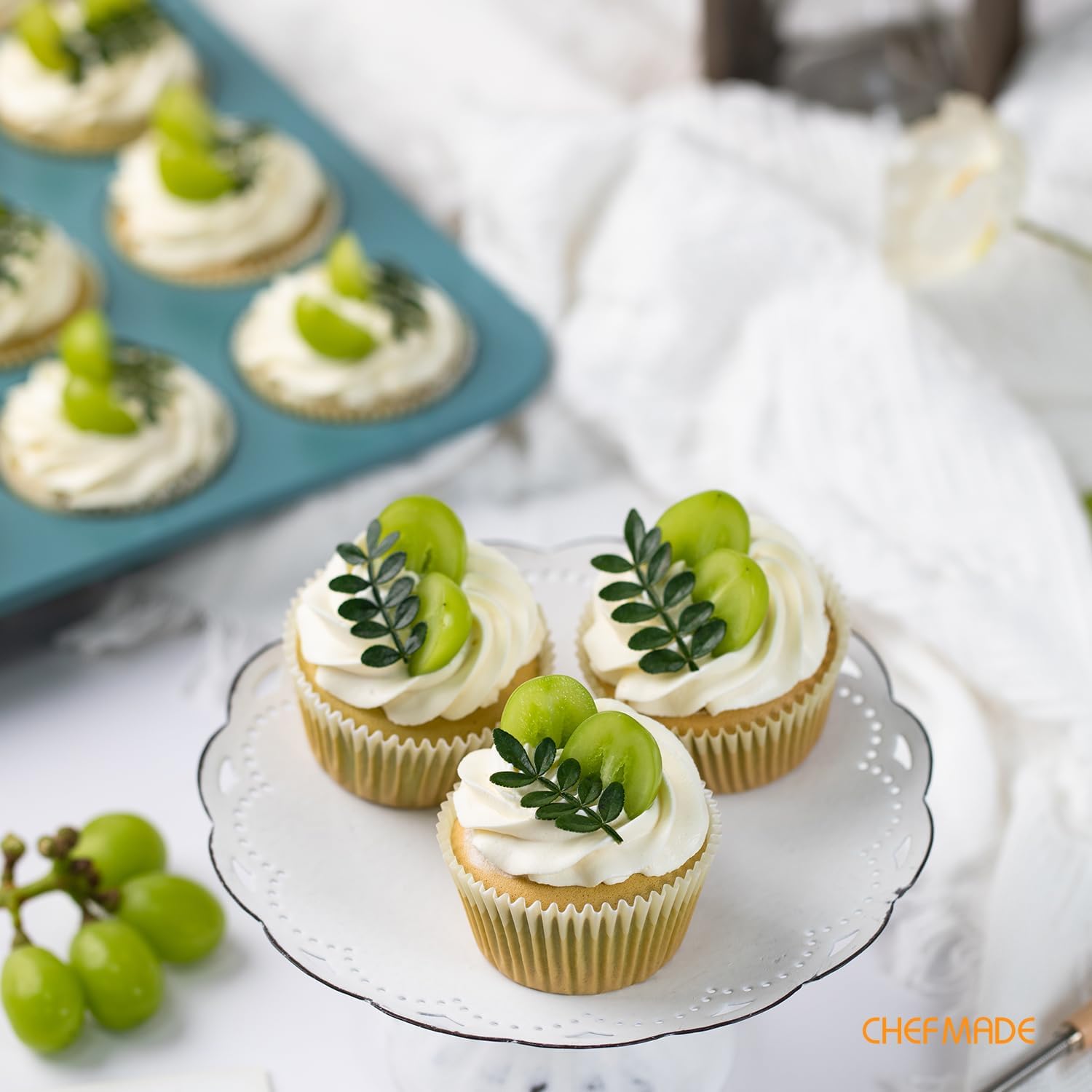 CHEFMADE Muffin Pan, 12 Cups Non-Stick Cupcake Baking Pan Heavy Duty Carbon Steel Pan Muffin Tins Standard Baking Mold for Cakes(Green)