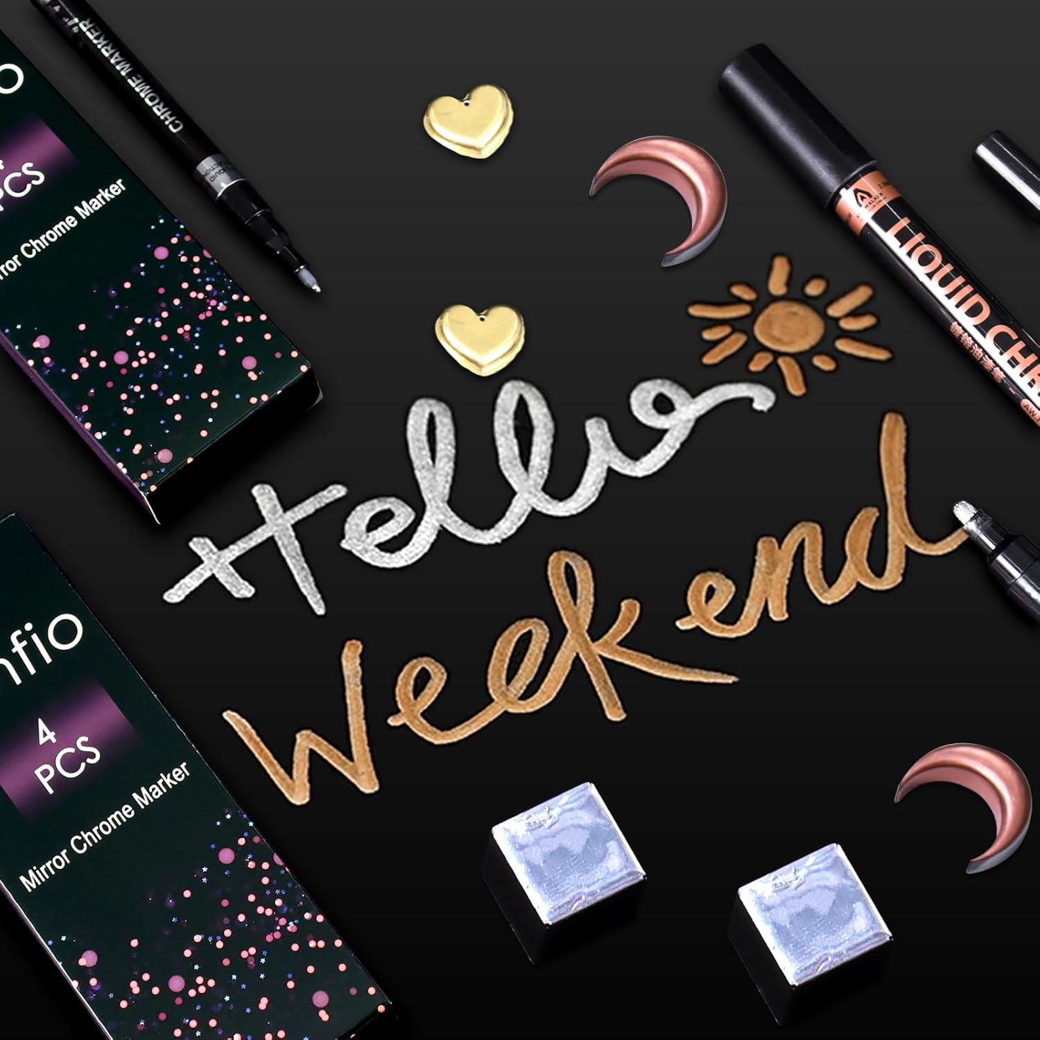 - High-Shine Metallic Mirror Finish - Chrome markers create a highly reflective, mirror-like finish that resembles real chrome plating. Metallic pen permanent markers enhances the visual impact, paint pens creates dynamic light for hand-drawn metallic lines, model painting, automotive detailing, or personalized markings on resin molds. As paint markers for mirror repair, metal, suitable scrapbook supplies, craft supplies and resin accessories, metallic pen marker provide outstanding decorative effects.