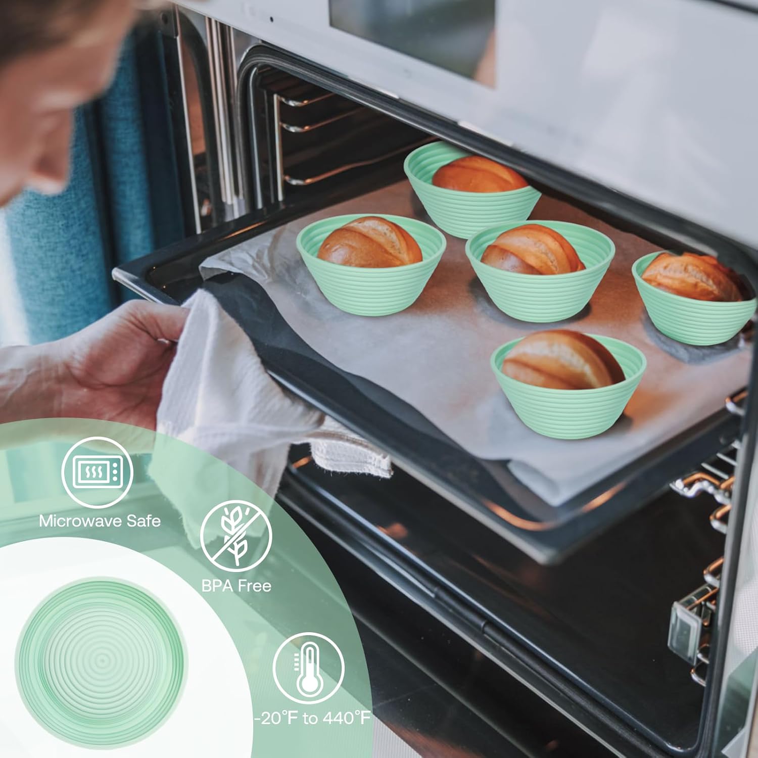 - Elevate Your Baking: Our premium silicone bread proofing baskets outshine traditional rattan ones. The sourdough starter kit is made from top-grade, BPA-free silicone, our bread baskets handle temperatures from -20°F to 440°F (-30°C to 226.15°C), ideal for fridge proofing and direct oven use. Safe, durable, and versatile—transform your baking experience today