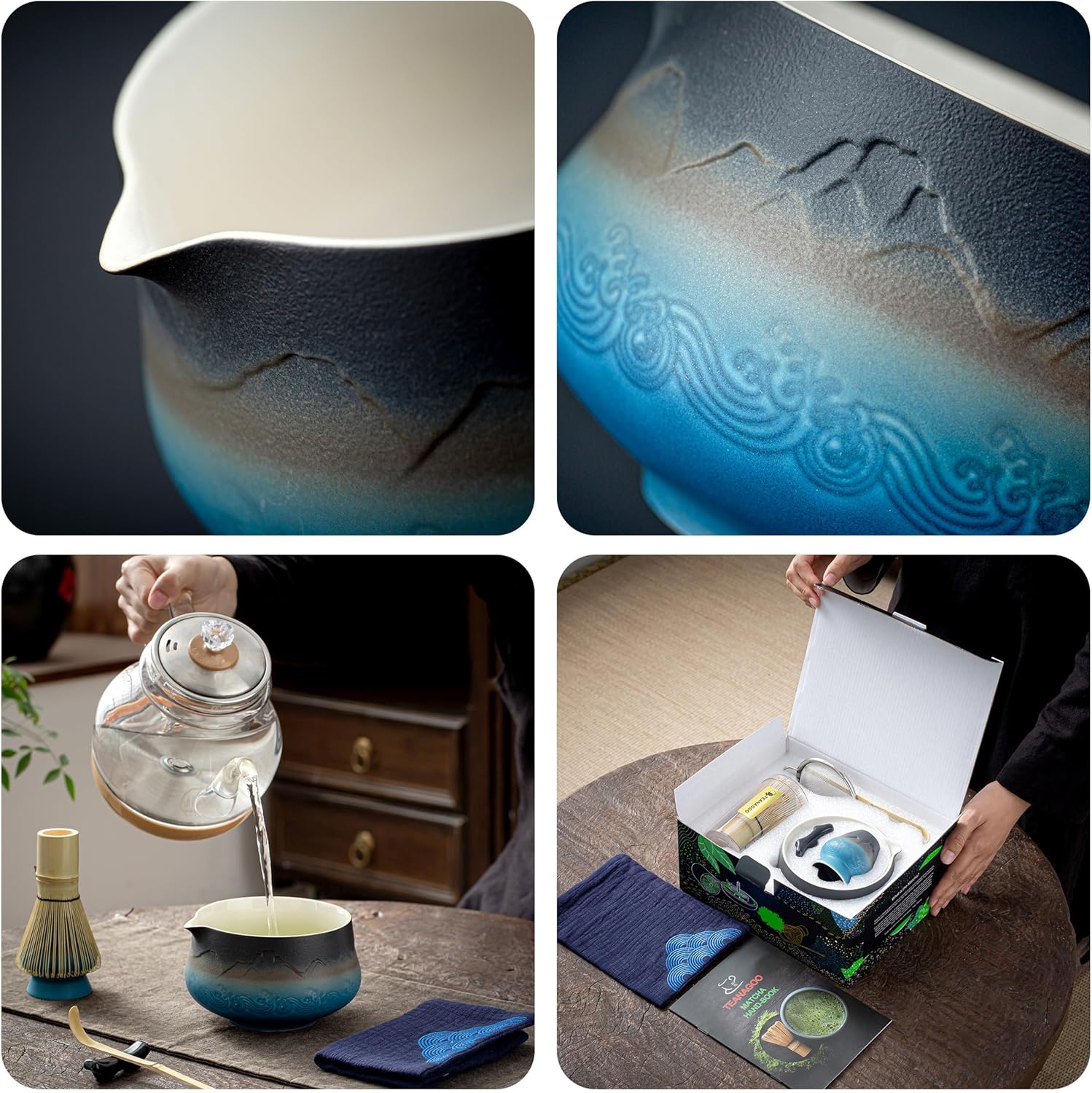 - 7-PCS MATCHA WHISK SET: 1*Ceramic Bowl (chawan) 560 Ml/18.9 Oz, 1*Bamboo Whisk, 1*Bamboo Scoop (chashaku), 1*Cermaic Whisk Holder, 1*Ceramic Scoop Stand, 1*Cotton Tea Cloth (chakin), 1*Matcha Powder Sifter.includes All Accessories