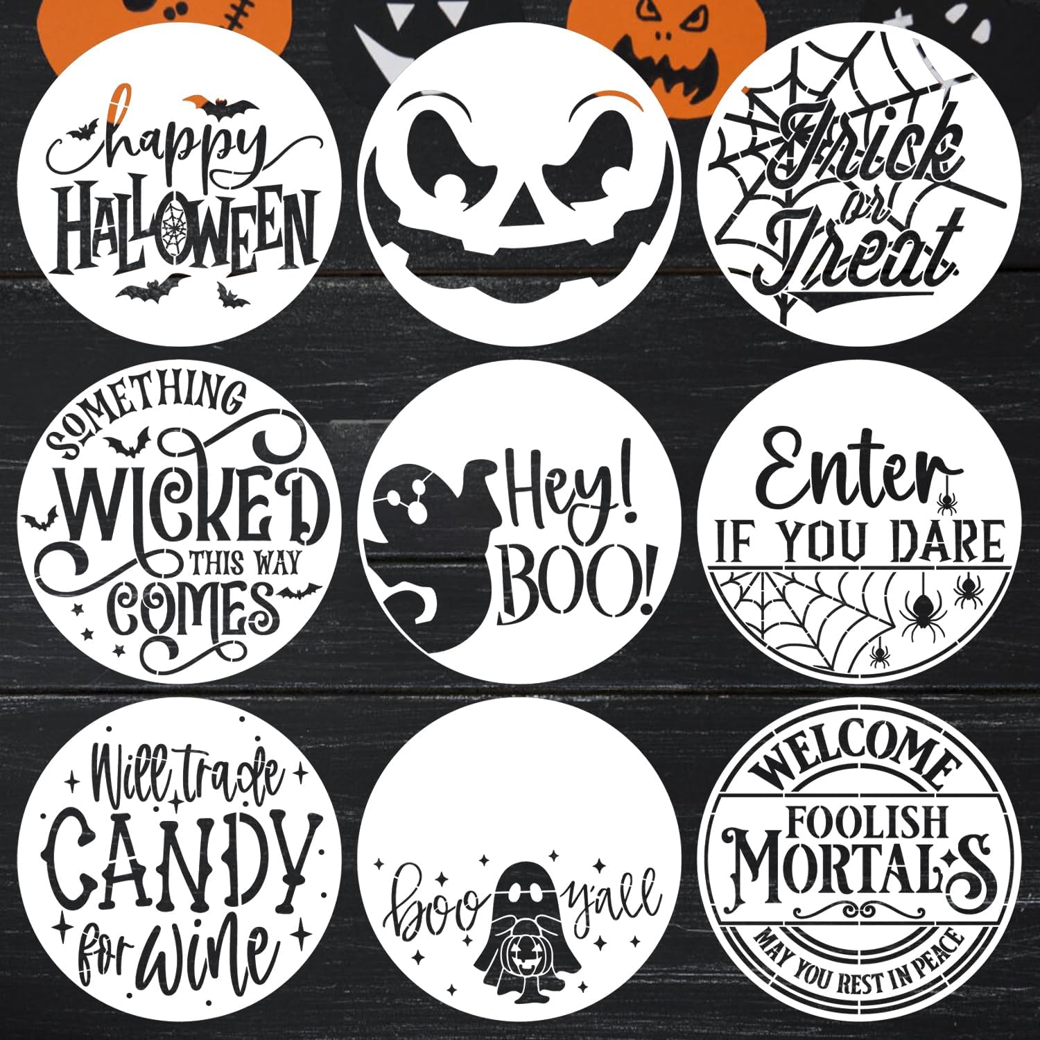 - Package Included: 9pcs round Halloween Stencils for Painting on Wood are all 11.8x11.8in.