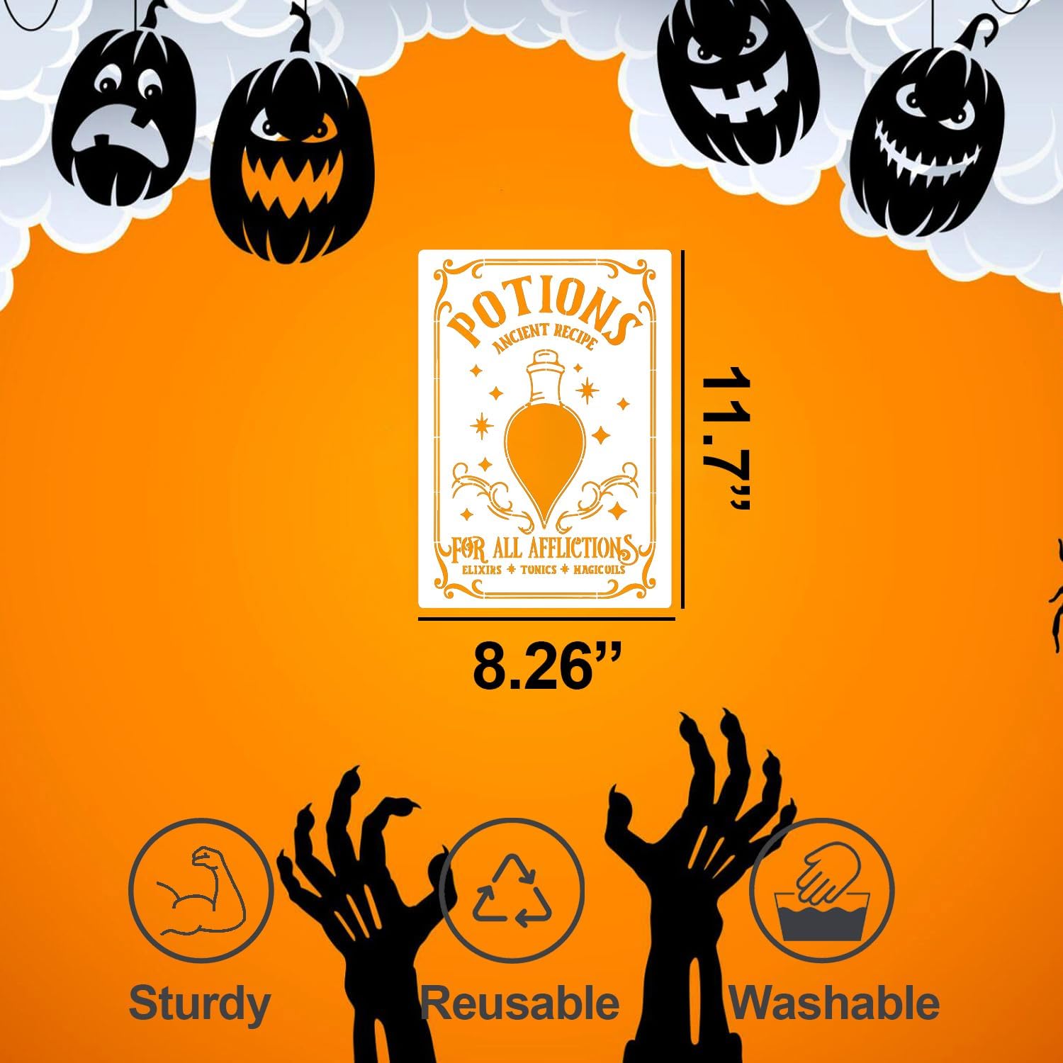 Halloween Stencils for Painting 11.7”x8.26” Reusable Halloween Stencil A4 Skeleton Witch Black Cats Draw Templates for Wood Signs Walls Windows Door Mat Fabrics
