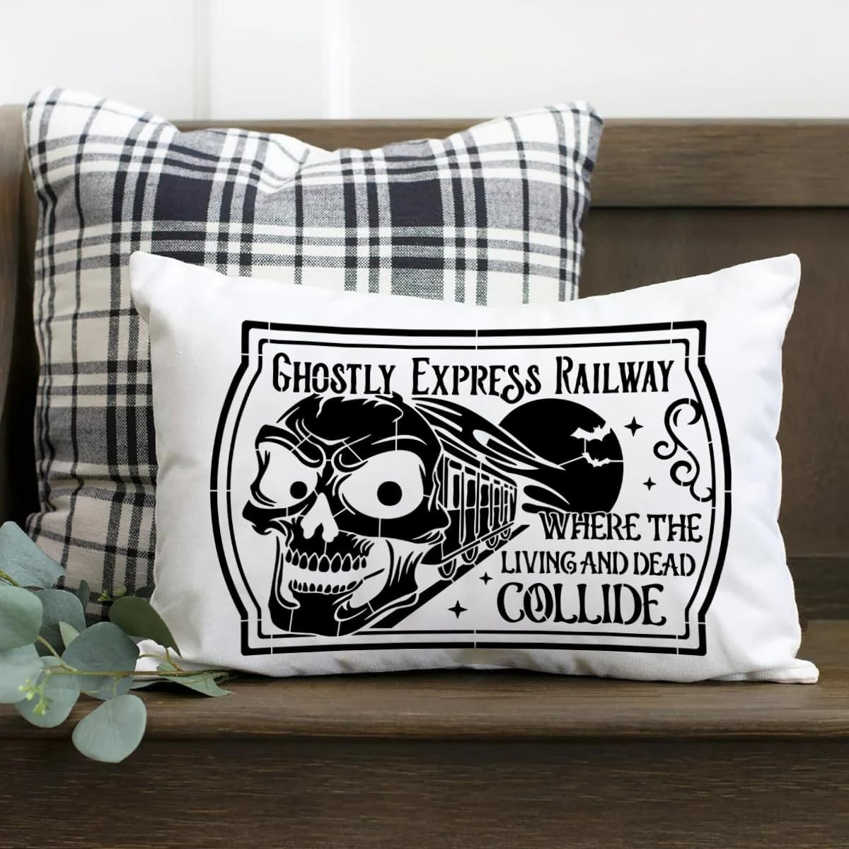 - Halloween Stencils:The Halloween stencil for wood set is a great way to add scary accents to your home decor.You can decorate pillow, round wood wreath,door hanger. Great for indoor use and displayed on a covered front door or porch.