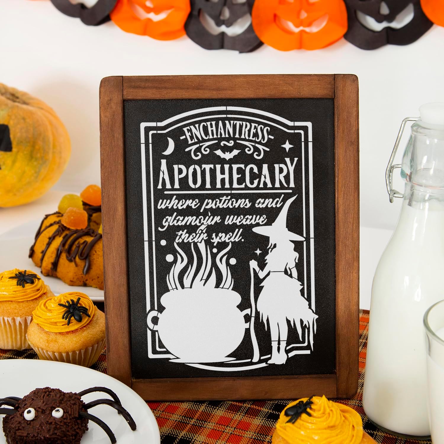 Halloween Stencils for Painting 11.7”x8.26” Reusable Halloween Stencil A4 Skeleton Witch Black Cats Draw Templates for Wood Signs Walls Windows Door Mat Fabrics