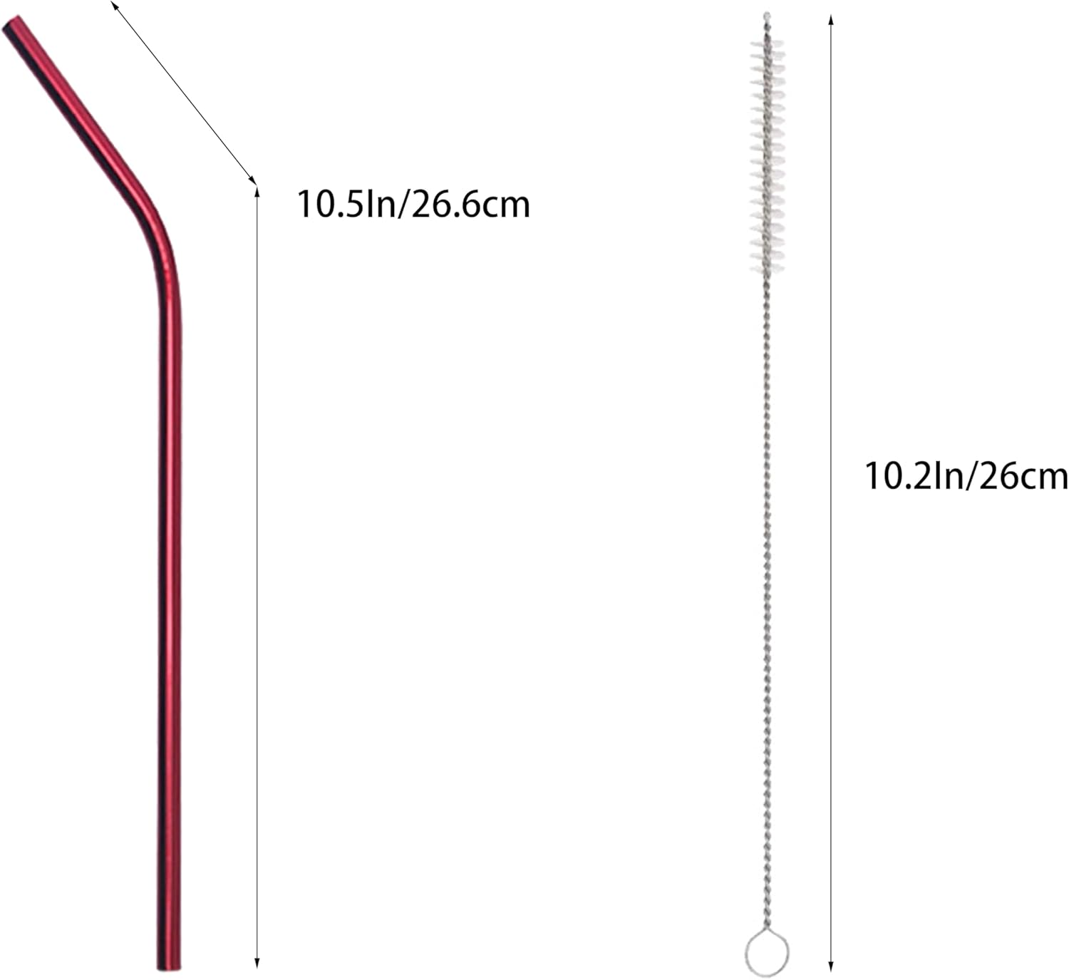 10 Pcs Stainless Steel Straws, Reusable Drinking Straws, Bent Metal Straw Sets with 2 Pcs Cleaning Brushes (Red, 10.5 Inch)