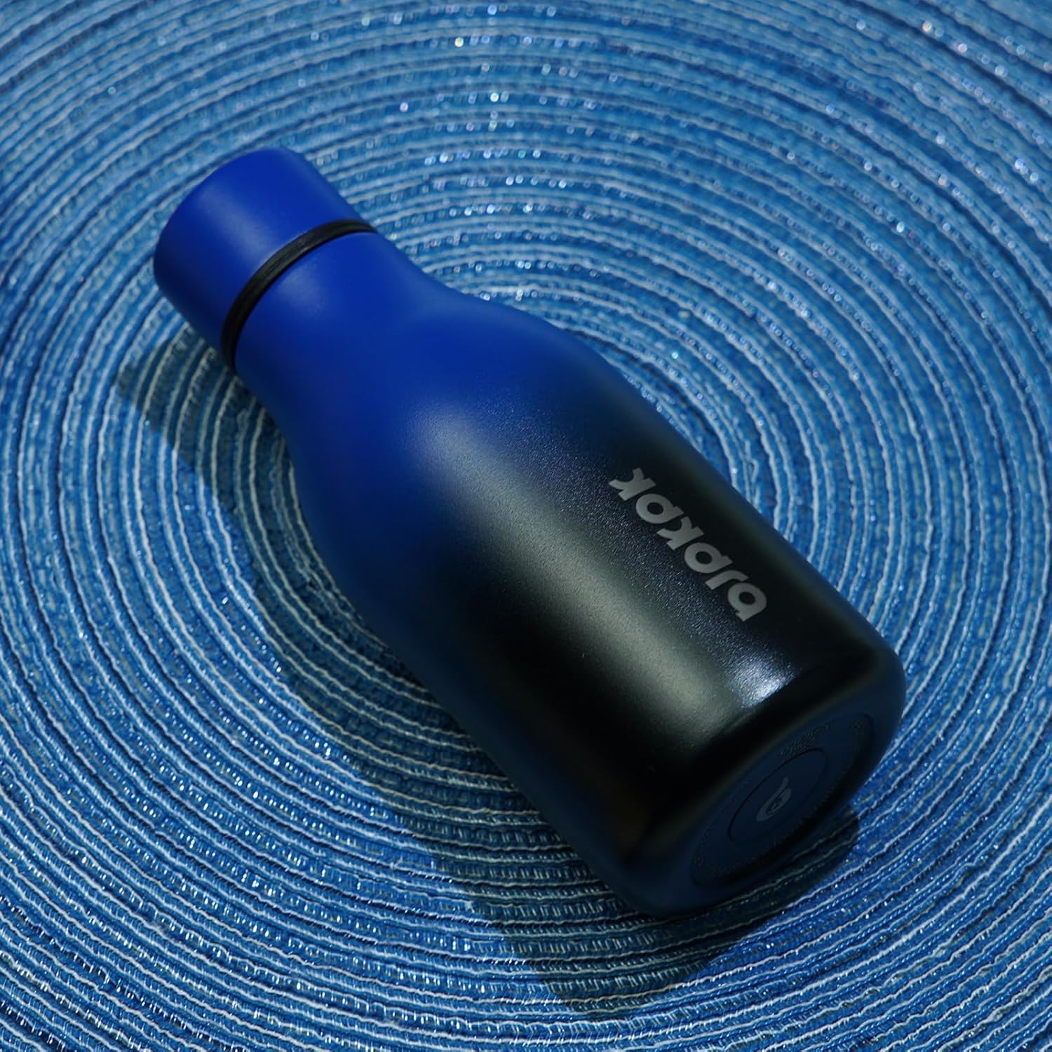 BJPKPK Insulated Water Bottles, 12oz Stainless Steel Metal Water Bottle with Strap, BPA Free Leak Proof Thermos, Mugs, Flasks, Reusable Water Bottle for Sports & Travel, Blue Black