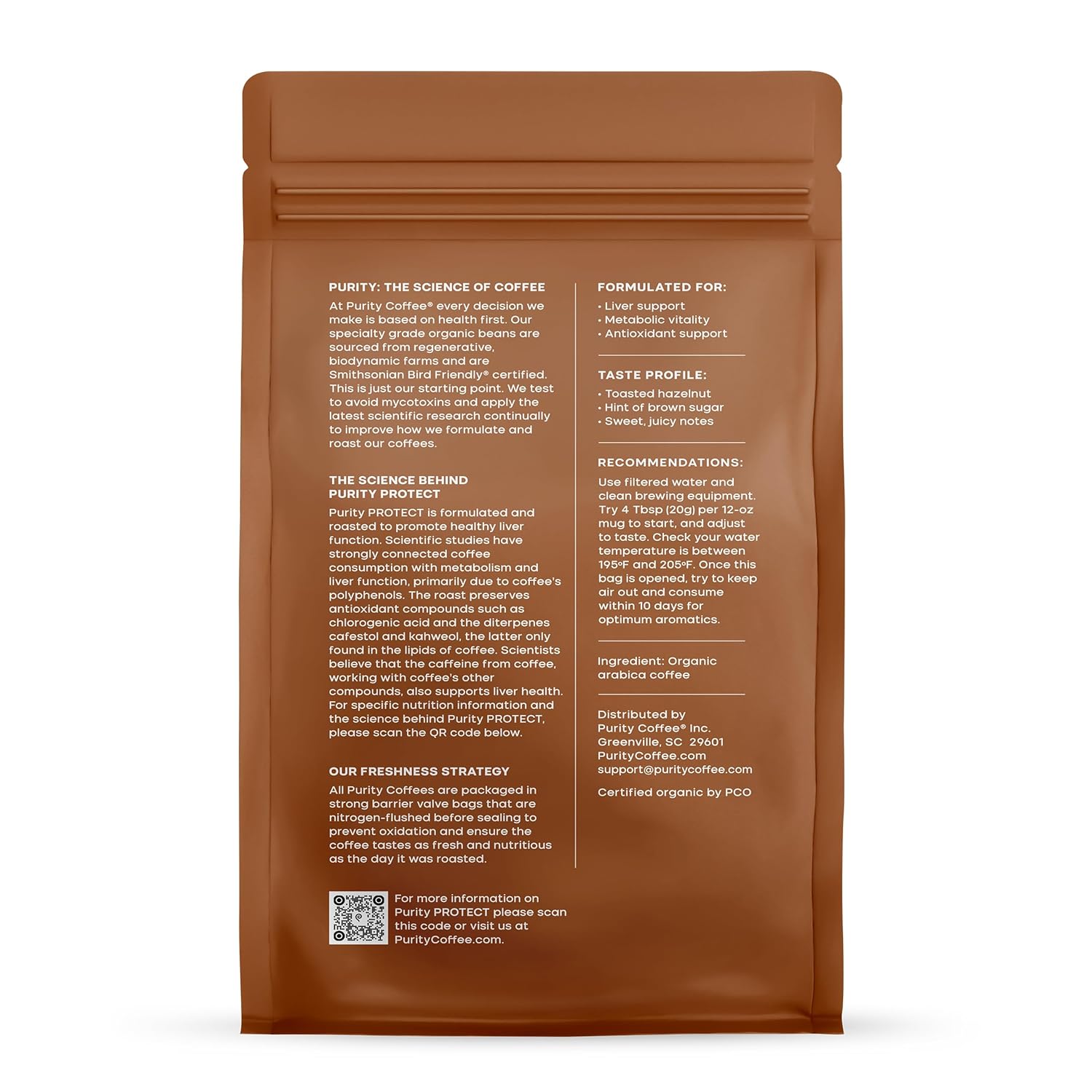 Purity Coffee PROTECT Light-Medium Roast Ground Coffee for Liver Vitality - USDA Organic and Third-Party Tested for Antioxidants, Mold, Mycotoxins and Pesticides - 12oz (Purity Protect, light_roast) | Ground| PROTECT
