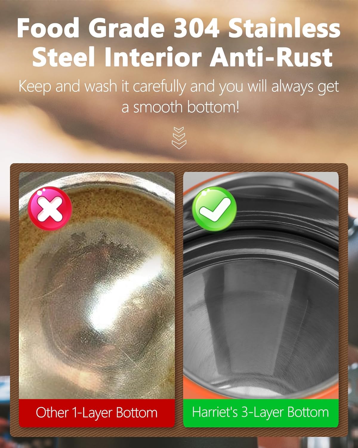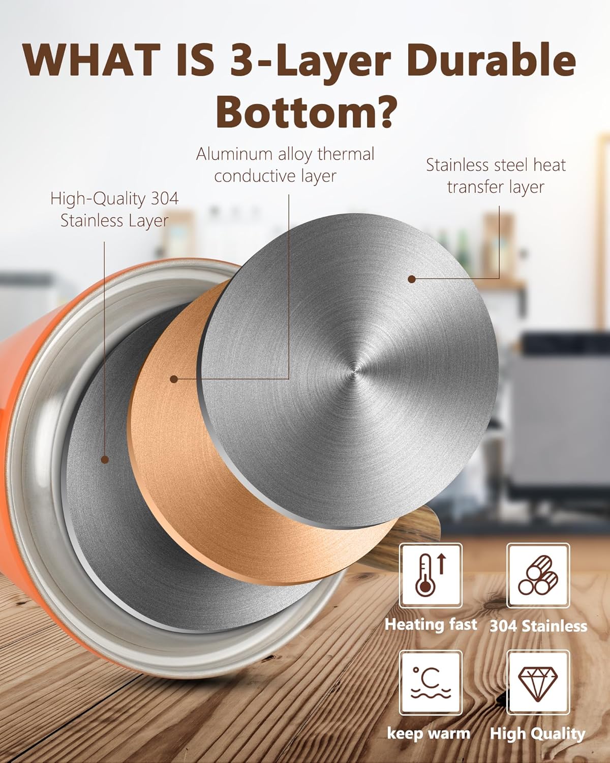 - Three layer base enhances heat retention and durability: Professional grade 18/8 stainless steel construction with triple layer base prevents rust and leaks; Uniform heat circulation ensures rapid boiling on gas, induction or electric stoves; Medium heat setting below 1400W recommended for induction compatibility