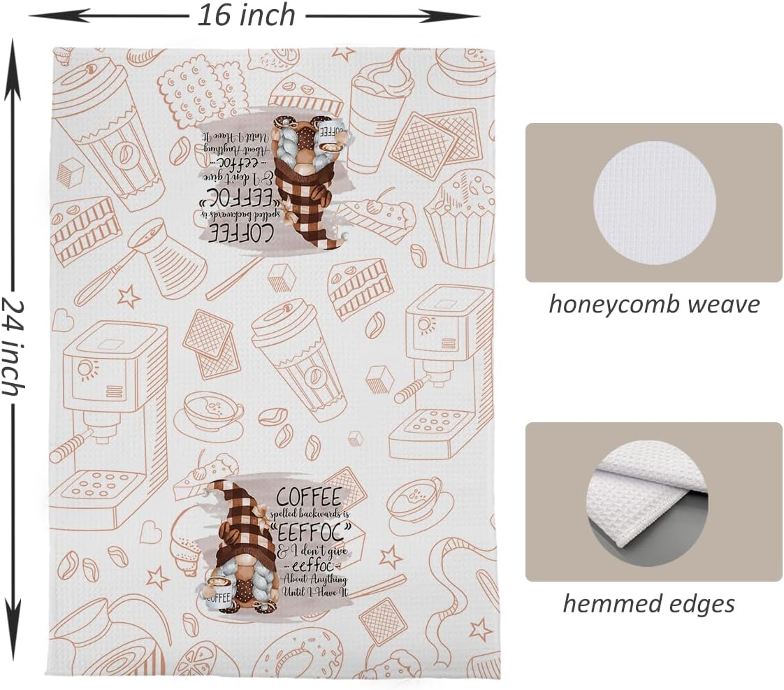 Coffee Gnome Kitchen Towels for Bar Decor - Funny Dish Tea Towels, Lover Gifts, 16x24 Inches