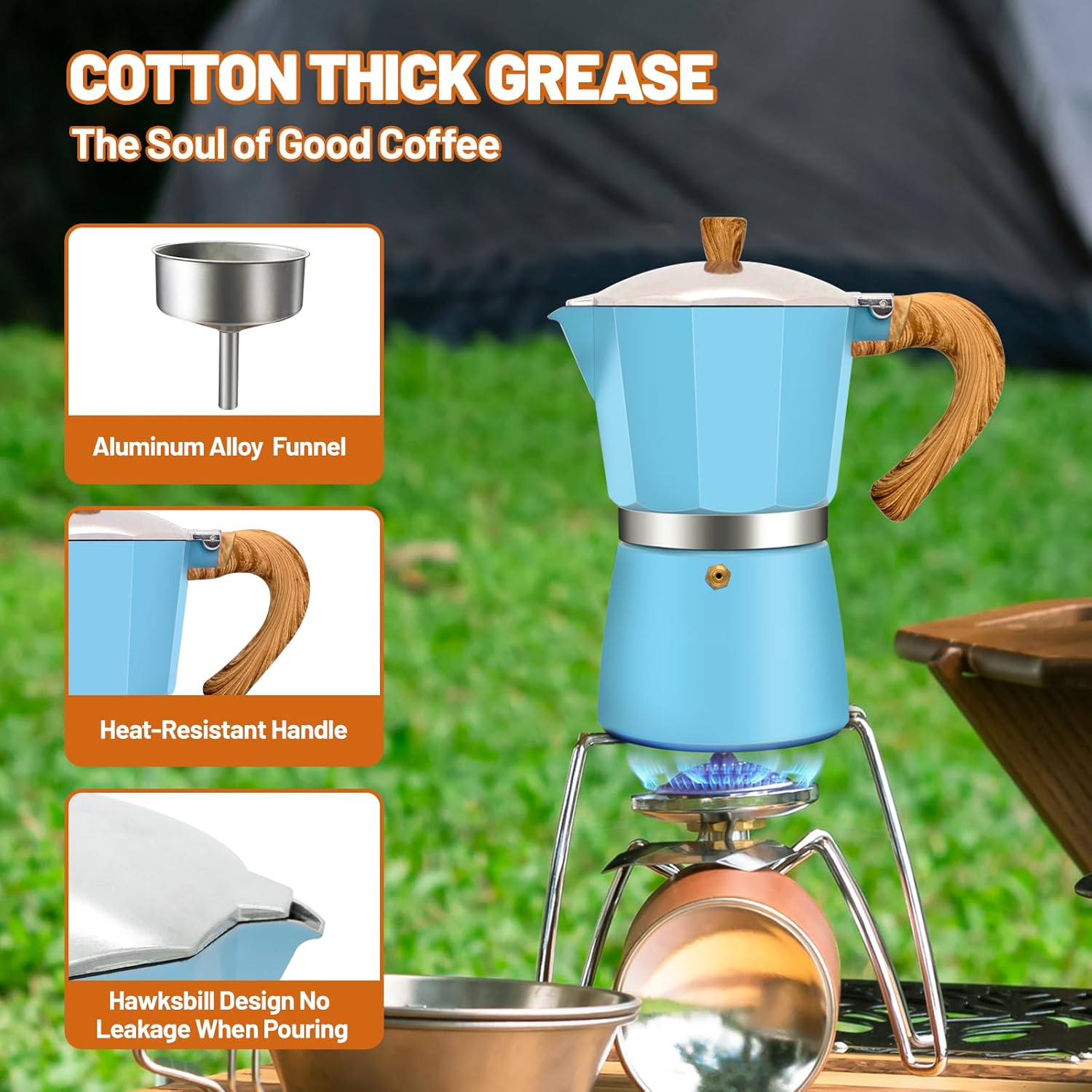 - How to Prepare the Coffee: When you use it for the first time, the coffee pot may emit an unpleasant smell, please don't worry too much, this is a normal situation. Pls add tea, oranges, detergent, or other items to remove odor and wash several times before use. Can be used on gas or ceramic stove tops, allows you to create and enjoy the best-tasting coffee with utmost ease. Classic Italian style design ensures even heat distribution for rich, velvety coffee flavor and aroma