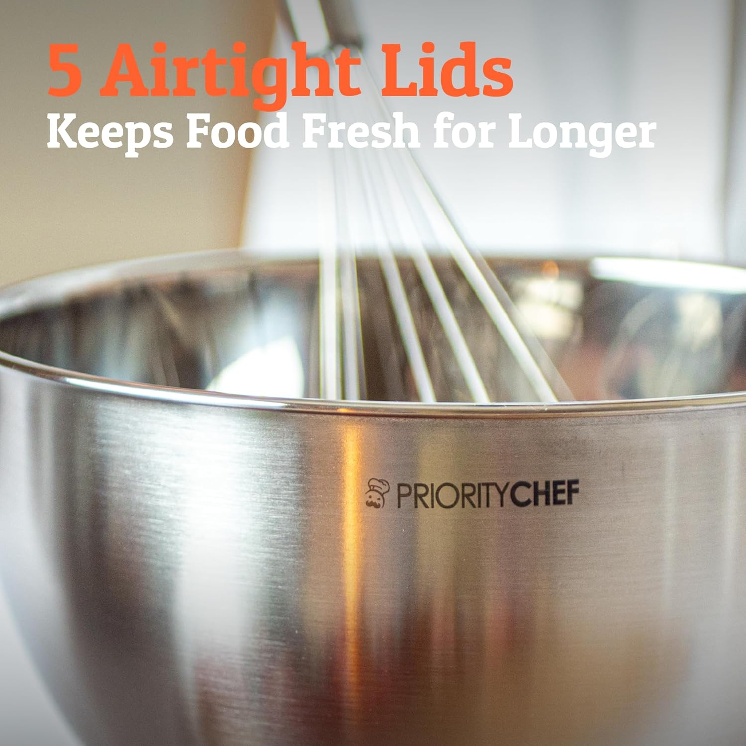 - Mix And Measure In The Same Bowl - With this premium PriorityChef mixing bowl set, we have used etched measurements that double as measuring cups, making cooking and baking preparation a breeze. Sizes are 1.5, 2, 3, 4 and 5 quart.