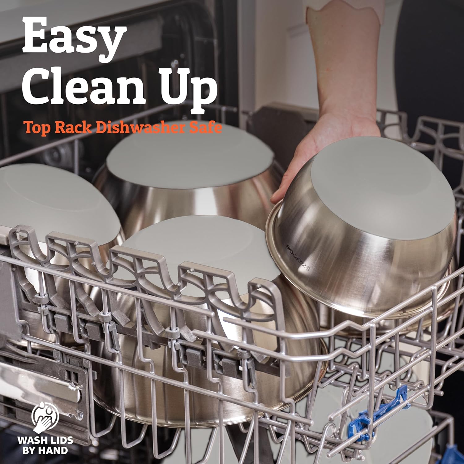 - Dishwasher Safe - Save time with the clean up too, this premium mixing bowl set is also top rack dishwasher safe [wash lids by hand].