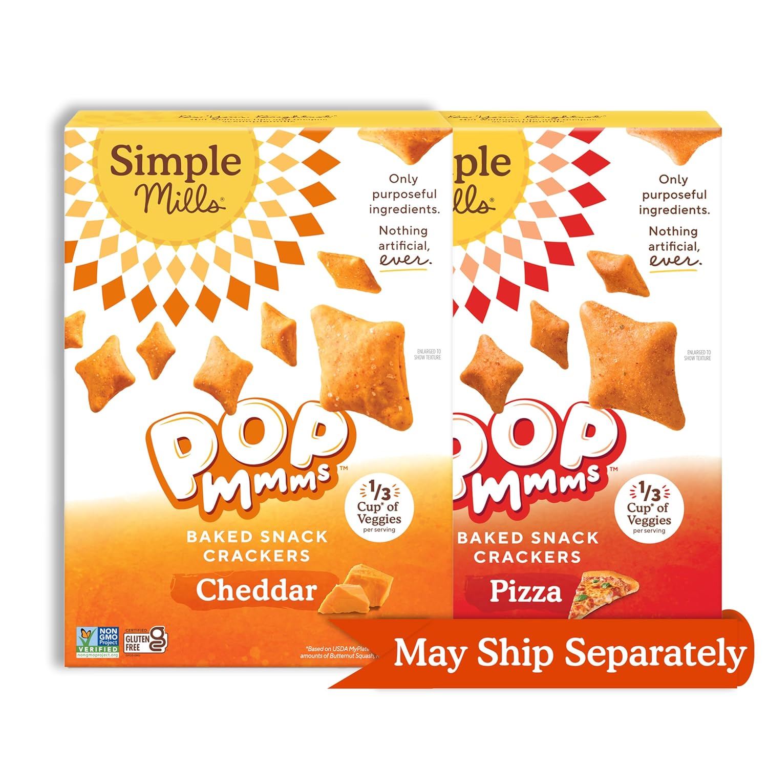 Simple Mills Pop Mmms Cheddar Baked Snack Crackers and Pop Mmms Pizza Baked Snack Crackers (Pack of 2)