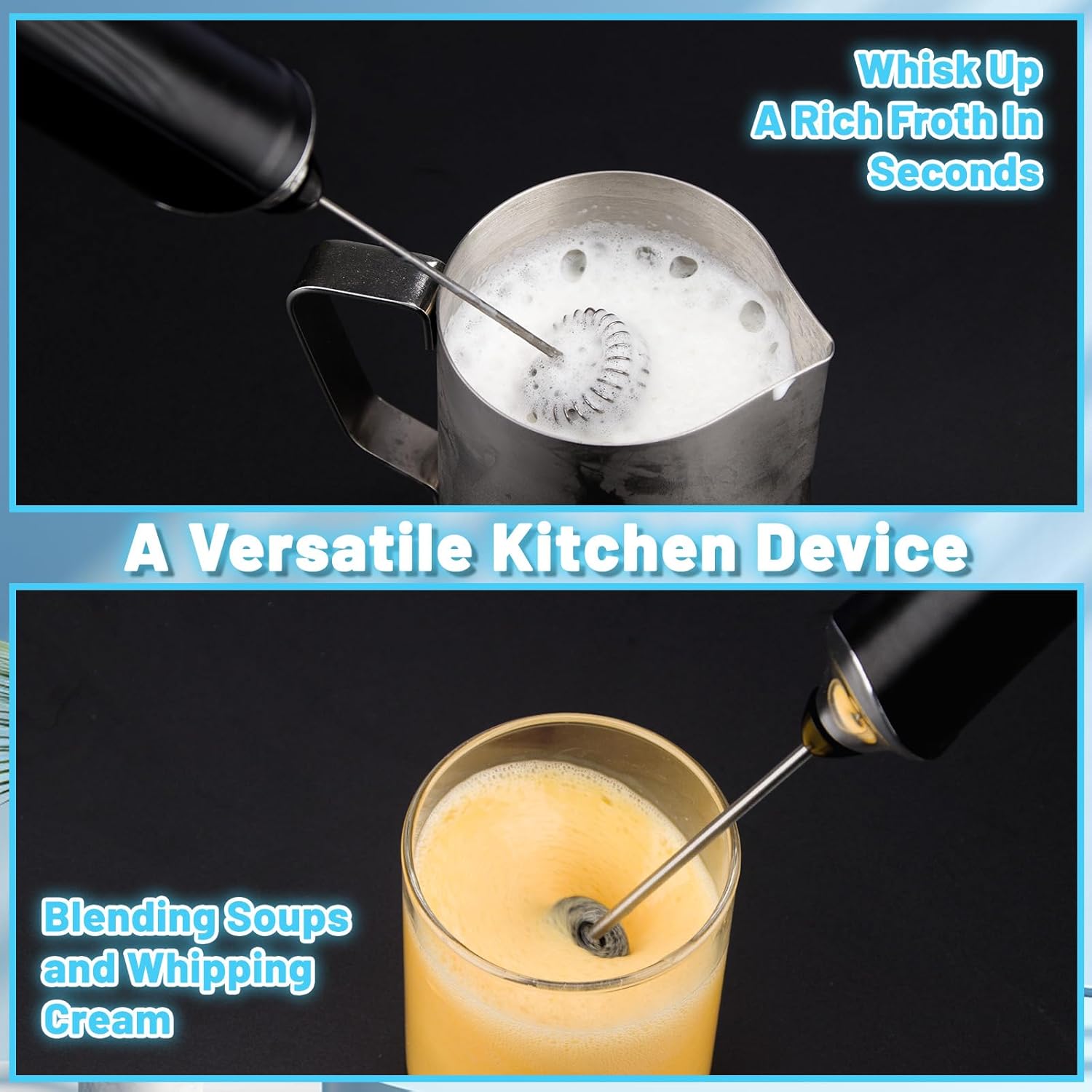 TonJin Milk Frother USB-C Rechargeable Handheld Frother Wand with 2 304 Stainless Whisks, New Upgraded 3 Speeds Coffee Whisk Frother Electric Drink Mixer for Lattes, Cappuccino, Egg, Matcha, Black
