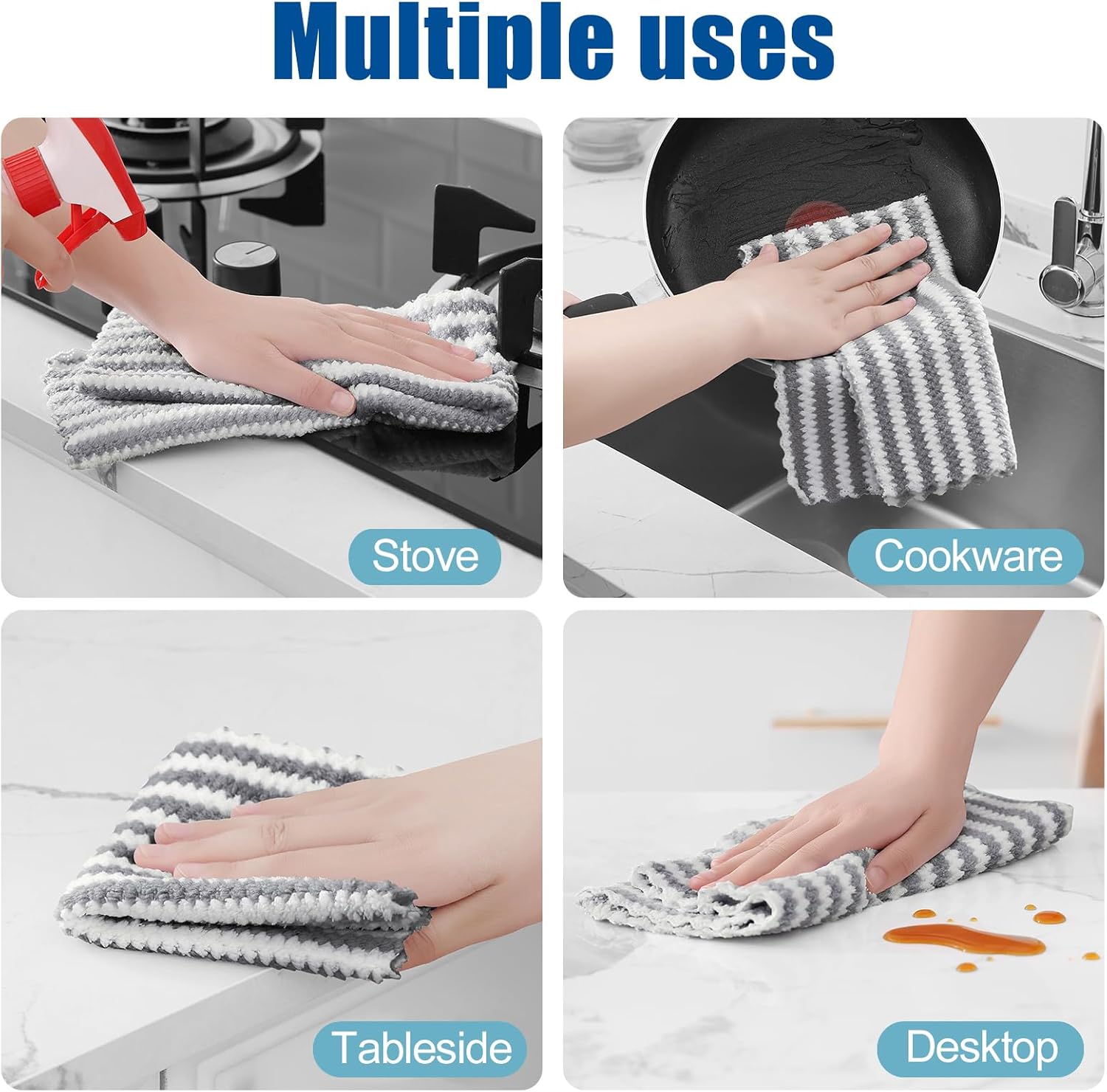 - Premium Material: These reusable cleaning cloths are made of premium microfiber coral fleece material, tightly stitched and designed to provide superior absorbency and durability, ensuring a no stripes and non-linting cleaning experience.
