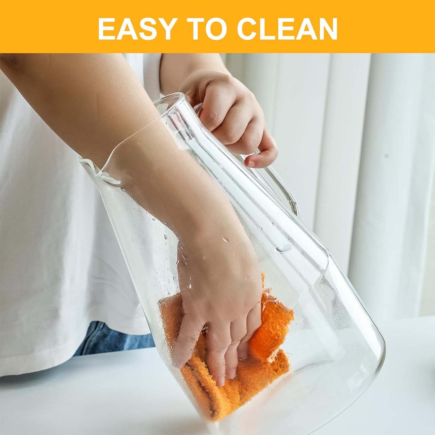 - Built to Last: Made from high-quality, durable glass, this pitcher is built to withstand daily use. It is resistant to scratches, stains, and odors, ensuring long-lasting performance.