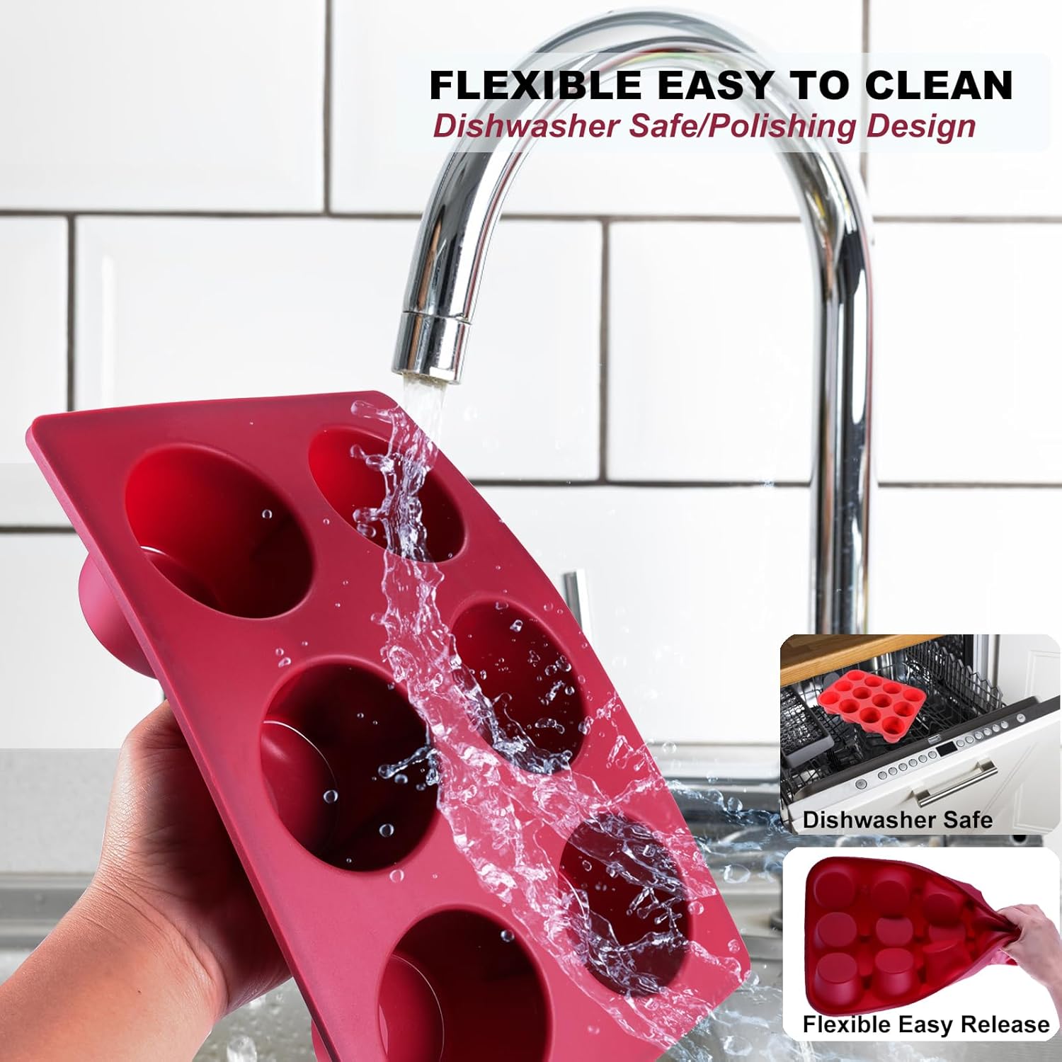 - Premium Quality Silicone Material Silicone Muffin Pan: This box include 1 pack 6-cavity deep silicone muffin pan, each cup measures diameter top: 2.75” and High: 1.97”, which are made of 100% food grade silicone, ensuring durability and long-lasting performance. You can make a dozen delicious muffins or chocolates in one go, saving you time and effort.