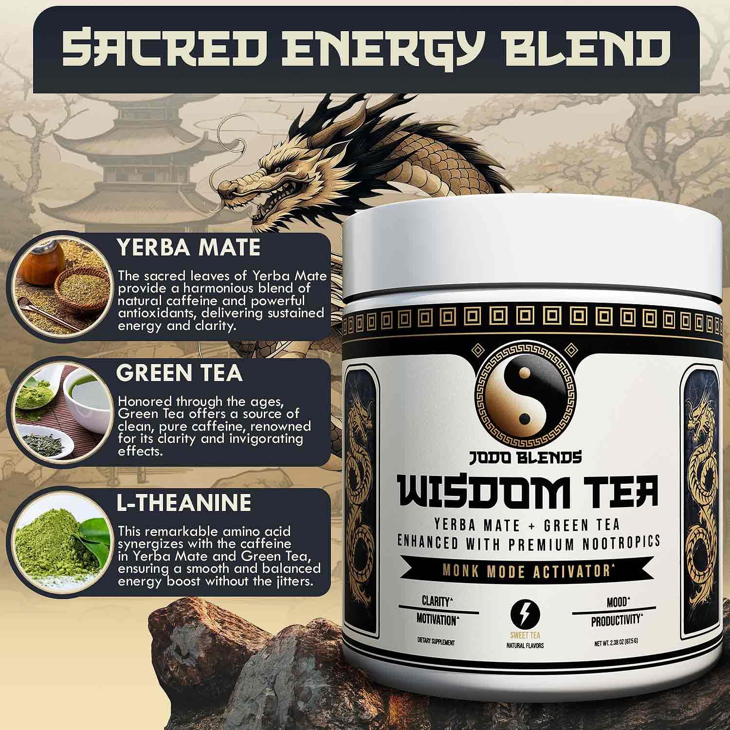 - MONK MODE IN A CUP – BUILT FOR HIGH-PERFORMANCE MEN: Wisdom Tea is a nootropic brain-boosting tea crafted for men who live with intention. Whether you're building a business, crushing goals, or chasing greatness - this is your daily ritual for clean energy and mental clarity.