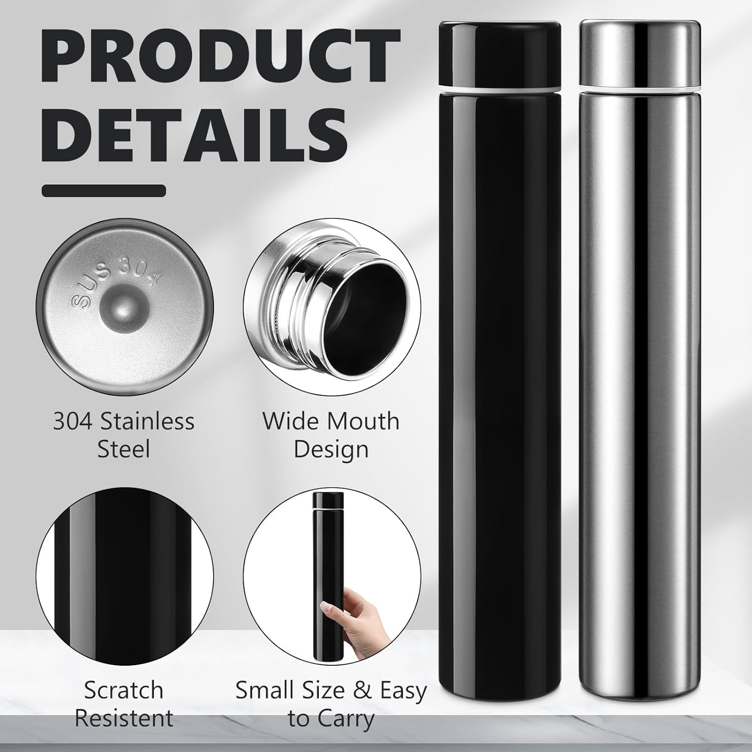 - Leak-proof design: the small vacuum insulated bottle is equipped with a spiral anti leak device; When tilted or shaken, the bottle will not leak easily, and you can carry it with confidence without worrying about messing up your bag; Its slim and unique appearance will draw everybody's attention; No matter where you take it, it will put you in the spotlight