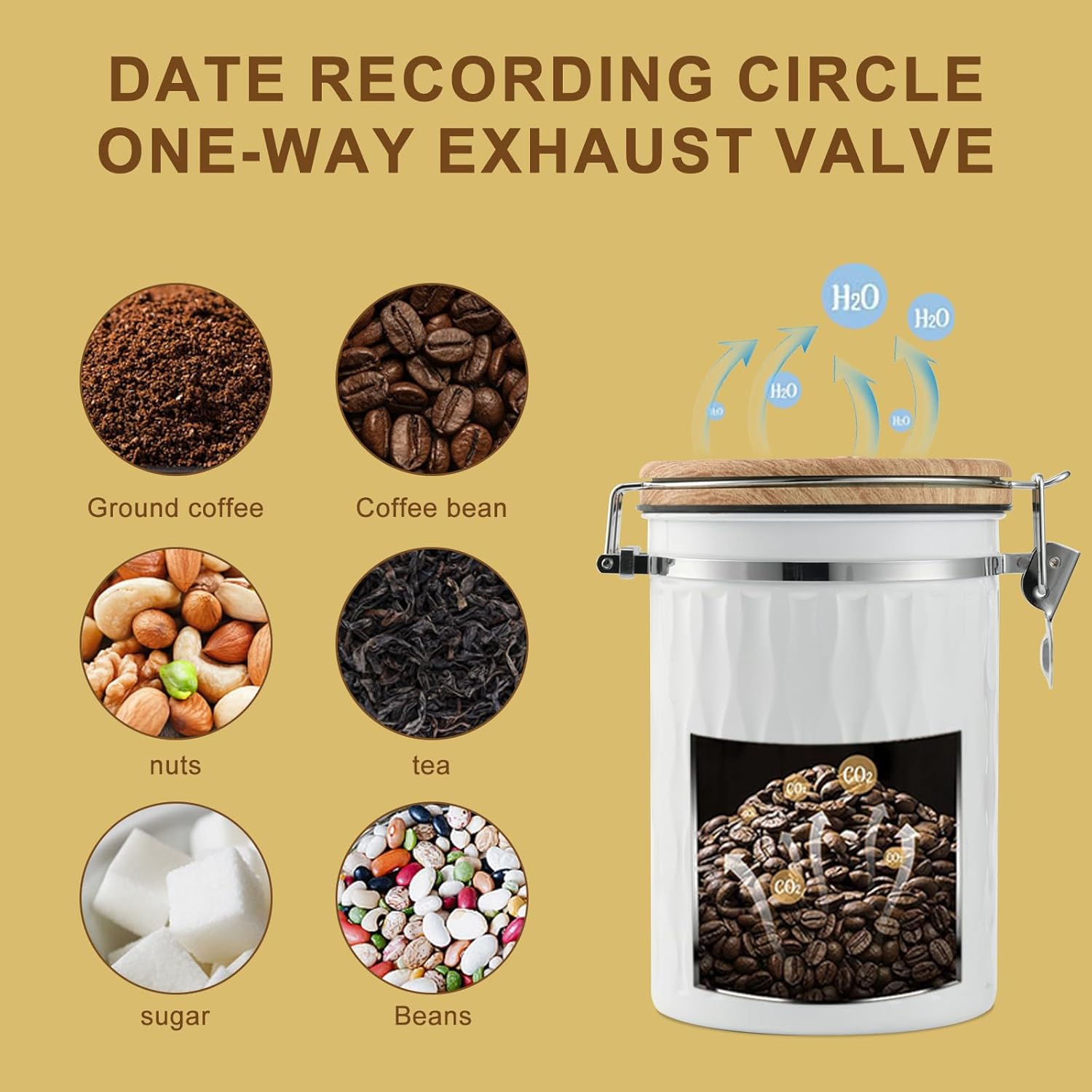 - 【Date Tracker & Free Scoop】: Ensure your coffee is always fresh and not expired. You can set the storage or expiry dates with the date tracker on the lid of your coffee storage canister. We also offer a free stainless steel coffee scoop, which can be attached to the hook!
