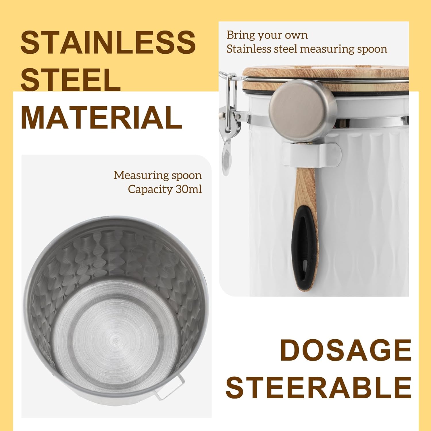 TEDSWAIT Coffee Container with Sealed Cantilever Lid and Scoop, Airtight Stainless Steel Kitchen Food Storage Canister with Date Tracker, 1.8L(White)