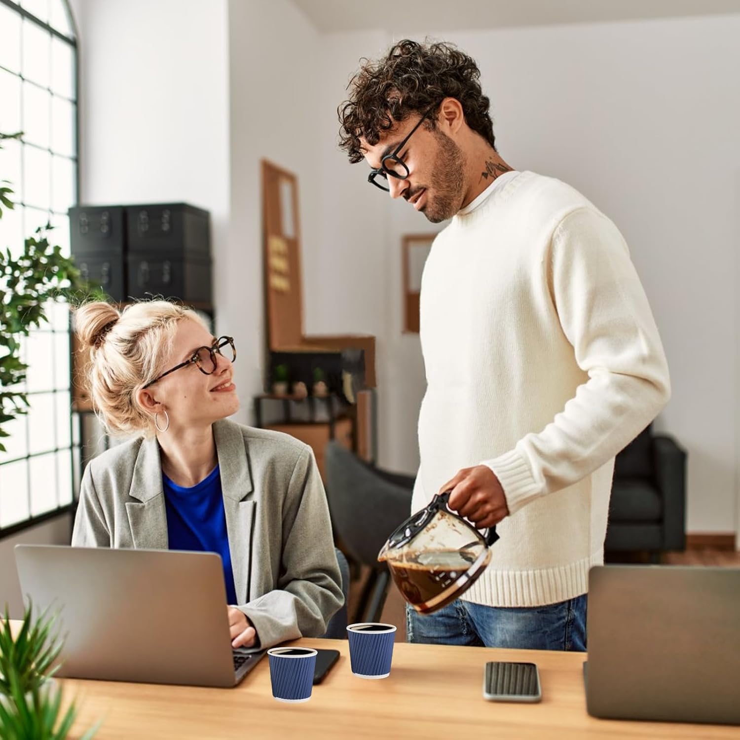 - 【Sturdy and Durable】Our disposable coffee cups are made of high quality corrugated paper, sturdy and durable, not easy to bend and break. The rolled edge design strengthens the edges of the disposable paper cups to prevent unwanted spills and deformation.