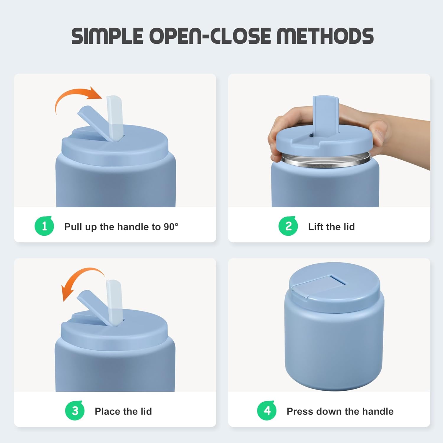 - Use Tips and Notes: In order to keep food hot or cold for a longer time, we recommend preheating/precooling with hot water/ice water for 5~10 minutes before putting food or soup into the food jar, and then put the food in. Note that when you disassemble the cover for cleaning and then reinstall it, be sure to lift the top of the cover before installing it. Otherwise, it will not be firm!!!