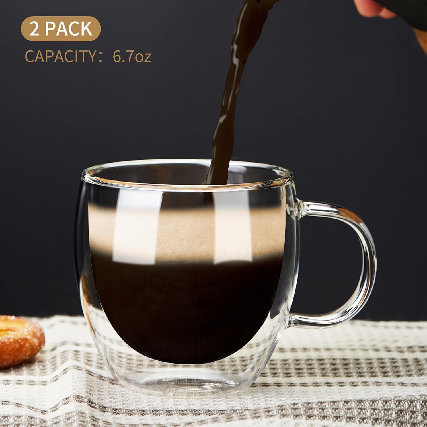 - DOUBLE-LAYER DESIGN FOR PRACTICALITY: This espresso cup features a unique double-layer design that keeps the liquid warm for a long time, whether hot or cold while preventing the outer wall from getting hot and causing your hands to burn when you drink. As the espresso slowly flows into the cup through the coffee machine, the coffee and perfectly churned milk froth float in mid-air like a cloud.