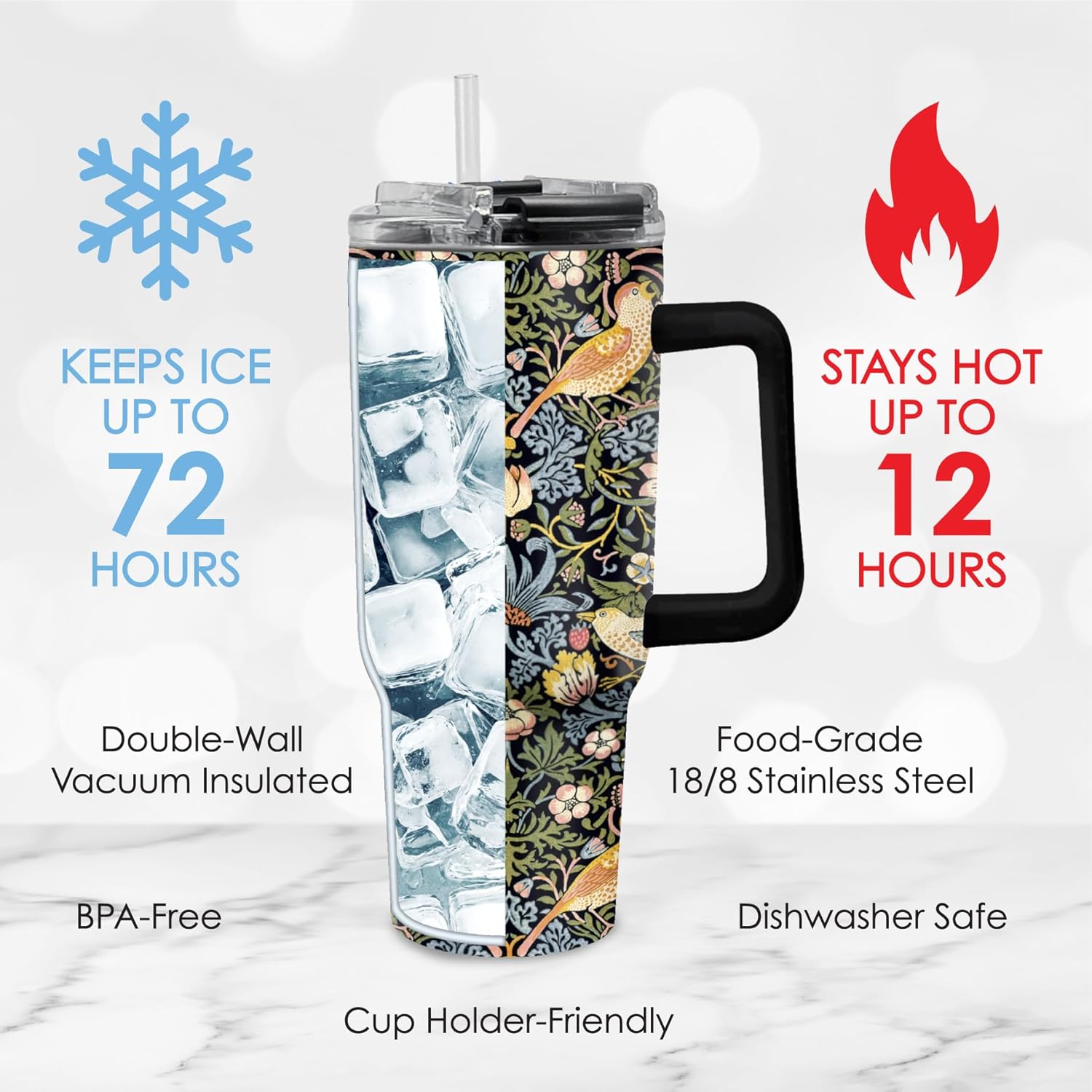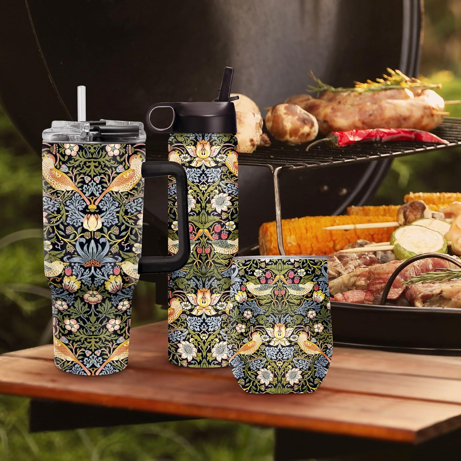 - STYLISH AND VERSATILE: The sleek, modern design of this water Tumbler makes it a fashionable accessory for any occasion. Whether you're hitting the gym, the office, school, or the trails, it's the perfect choice. Stunning rendering of William Morris famous artwork, "Strawberry Thief." The design is captured with an artist’s eye for detail, light, and color.