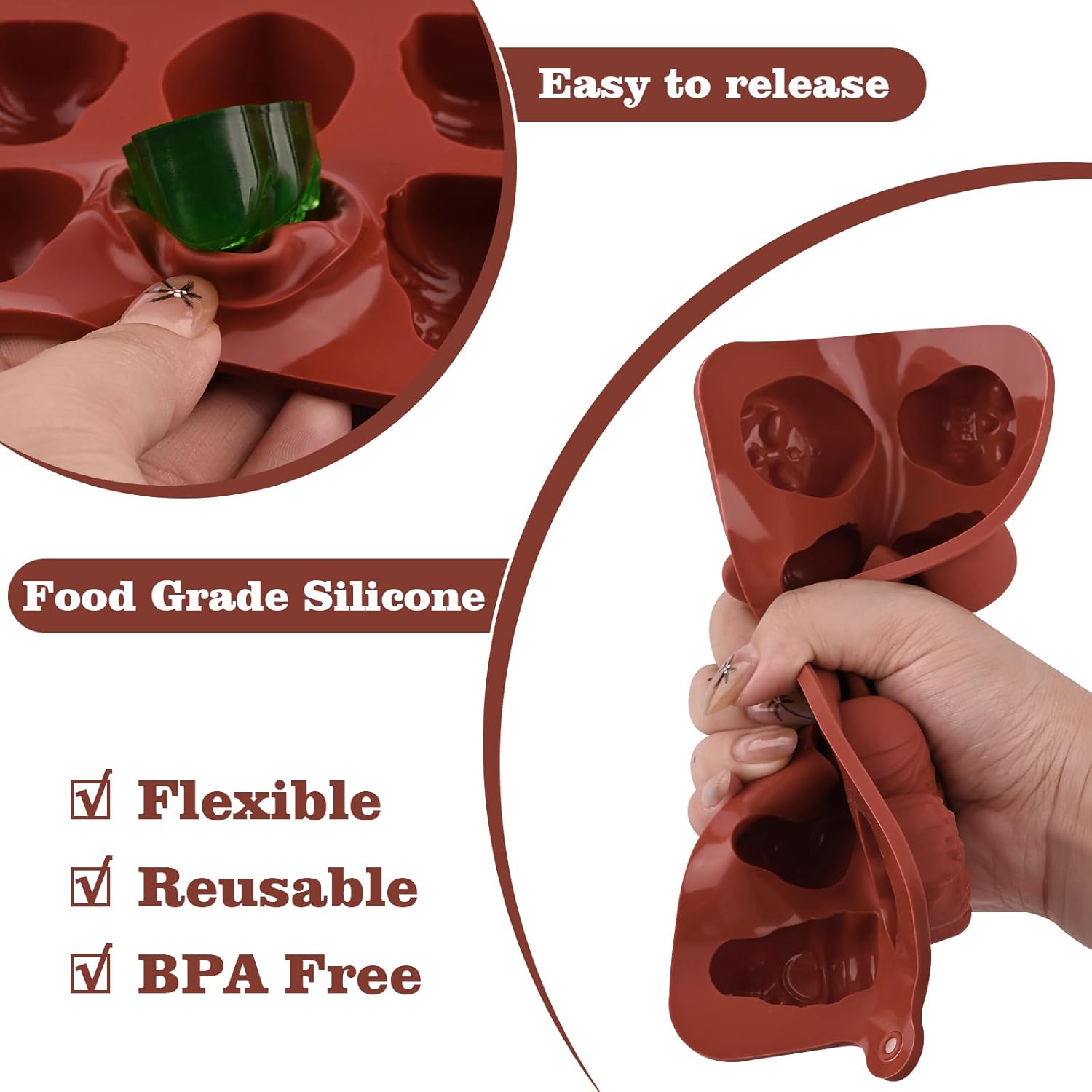 - Wide Applications: Halloween skull silicone molds can not only be used for baking, making chocolate, candy, jelly, gummies, hard candy, fondant, ice and cake decoration, but also for making wax melt, crayon, epoxy resin and other Halloween decorations.
