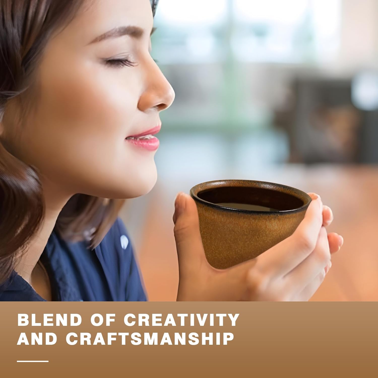 - 【Exquisite Ceramic Craftsmanship】Elevate your coffee ritual with our artisanal ceramic espresso cup set. Each piece is meticulously handcrafted to ensure a unique and elegant experience. The upper part of the cups transforms into a rich brown hue during firing, adding a touch of natural warmth to your daily brew.