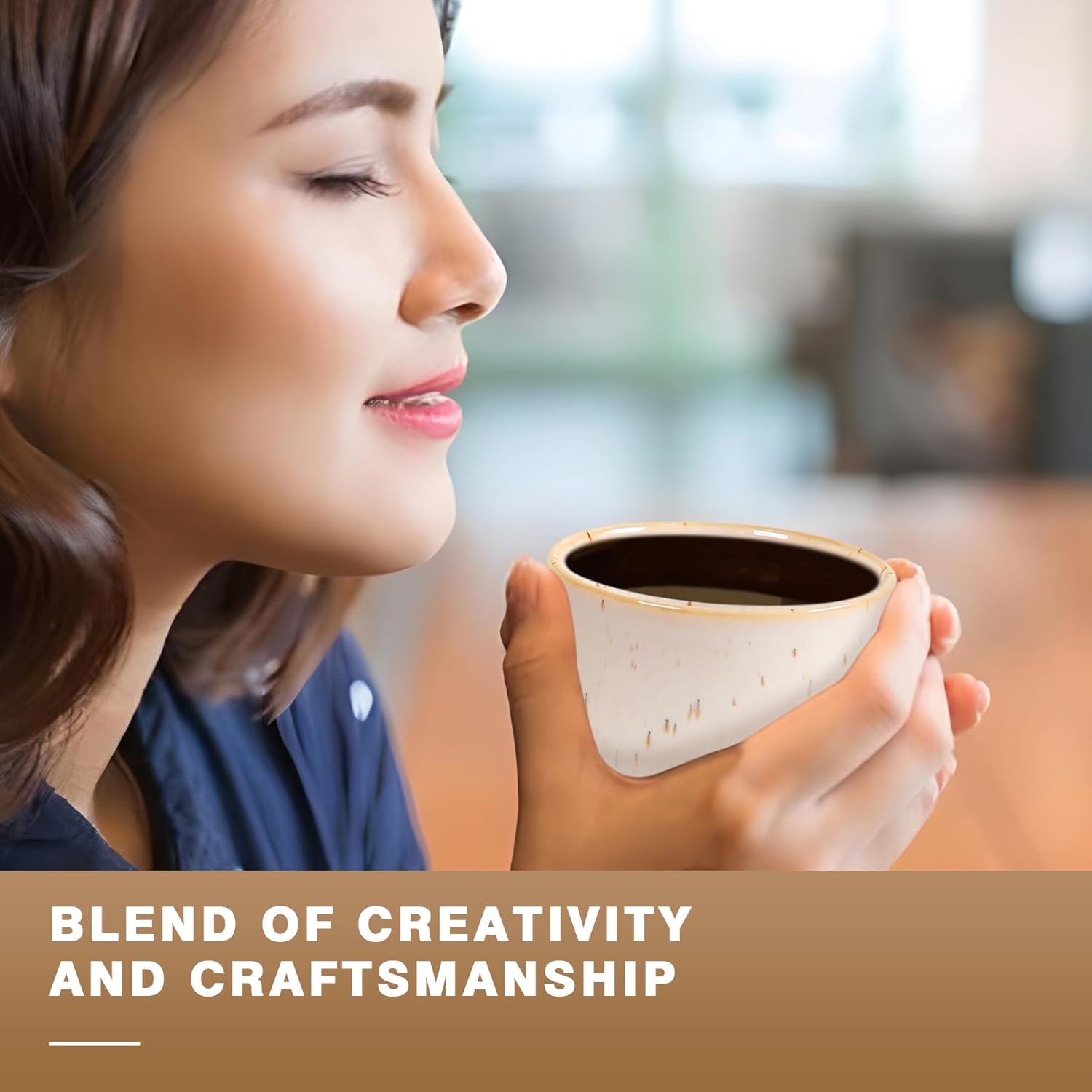 - 【Exquisite Ceramic Craftsmanship】Elevate your coffee ritual with our artisanal ceramic espresso cup set. Each piece is meticulously handcrafted to ensure a unique and elegant experience. The upper part of the cups transforms into a rich white hue during firing, adding a touch of natural warmth to your daily brew.