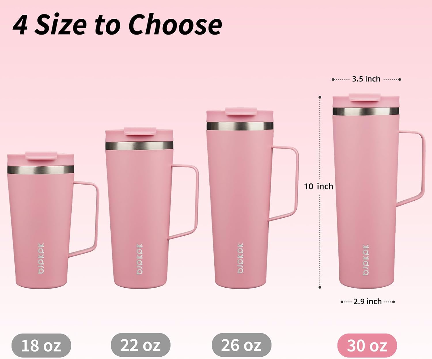 BJPKPK Insulated Tumbler with Handle, 30oz Insulated Tumblers with Lid and Straw, Stainless Steel Metal Water Bottles, Coffee Travel Mugs, Cups, Light Pink