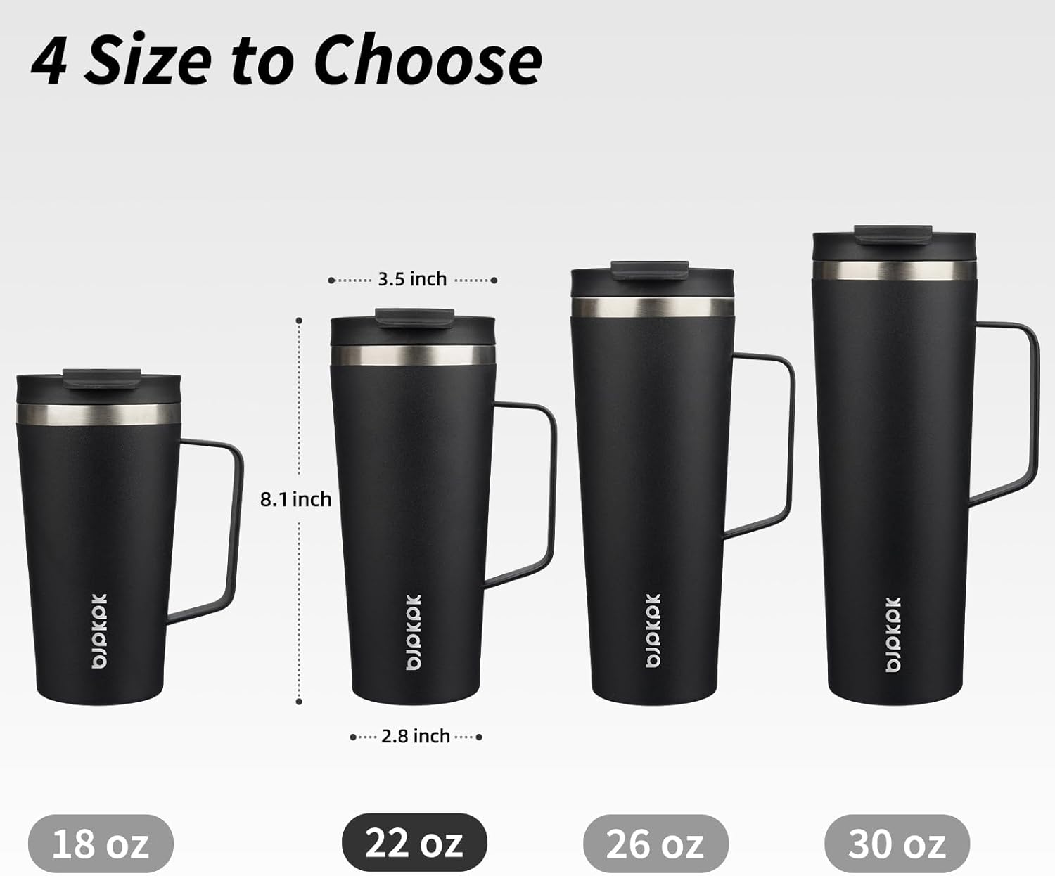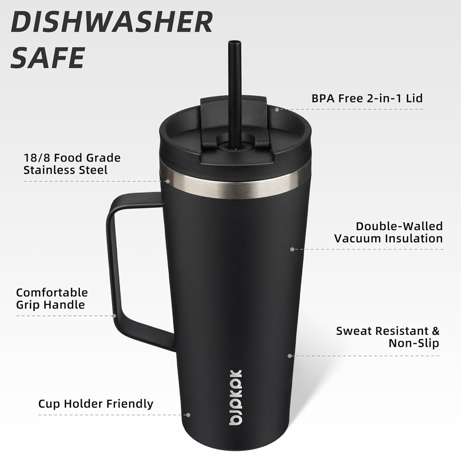 BJPKPK Insulated Tumbler with Handle, 22oz Insulated Tumblers with Lid and Straw, Stainless Steel Metal Water Bottles, Coffee Travel Mugs, Cups, Black