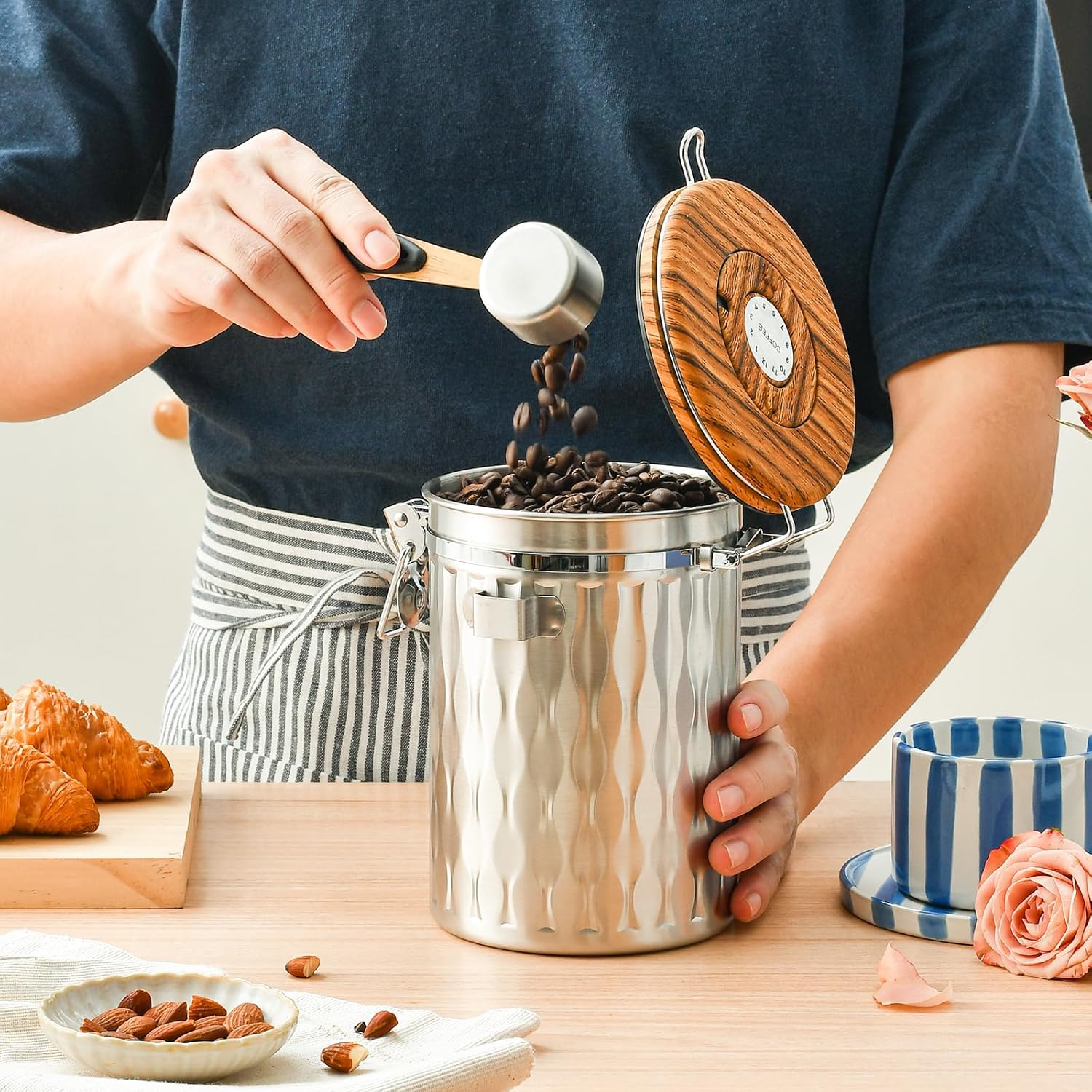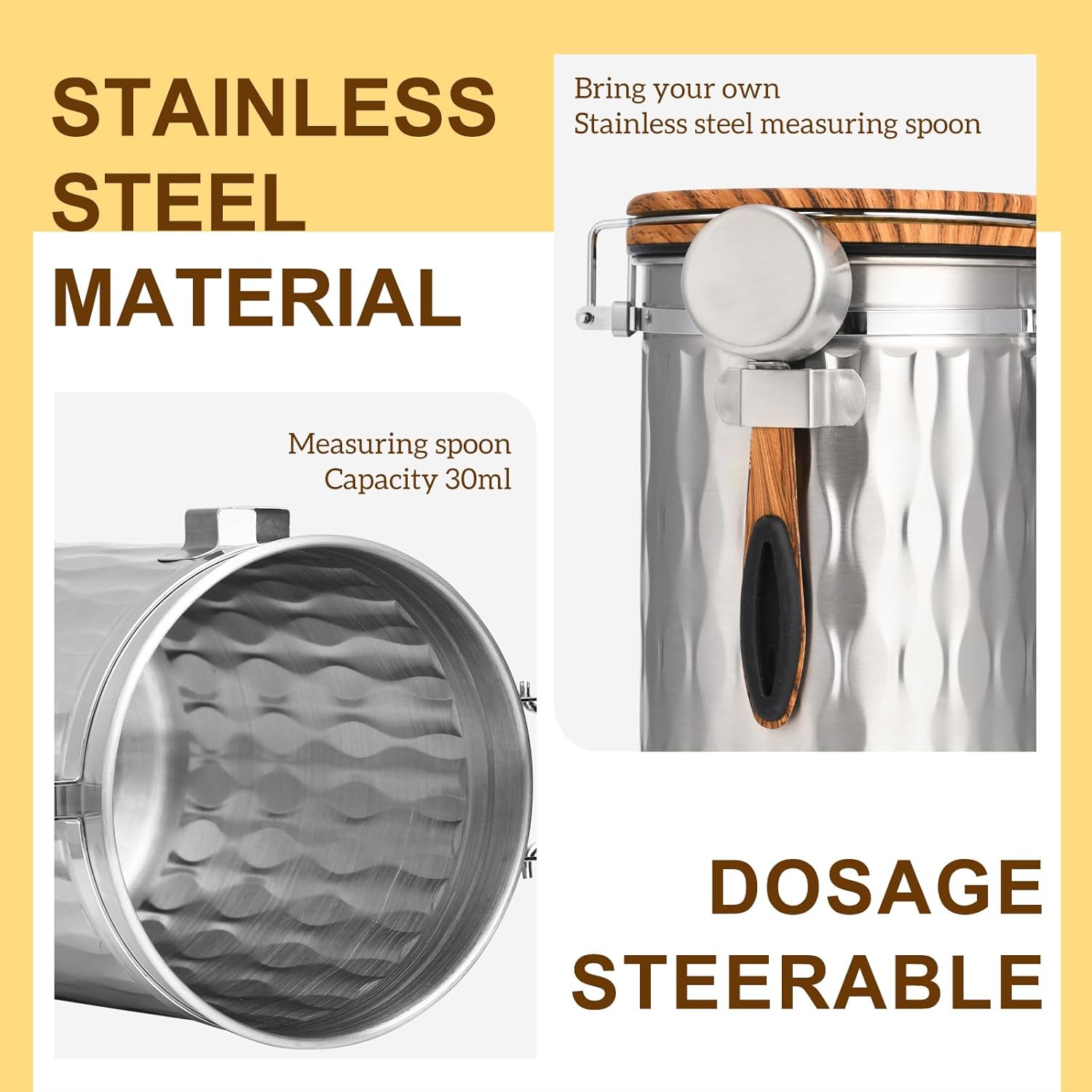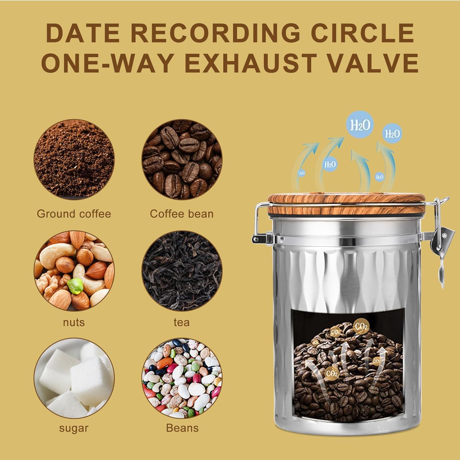 - 【304 Stainless Steel】: As a coffee lover, you must never compromise on the material and quality of your coffee container. Containers are made of thick, high-quality stainless steel to create a comfortable environment for coffee beans.