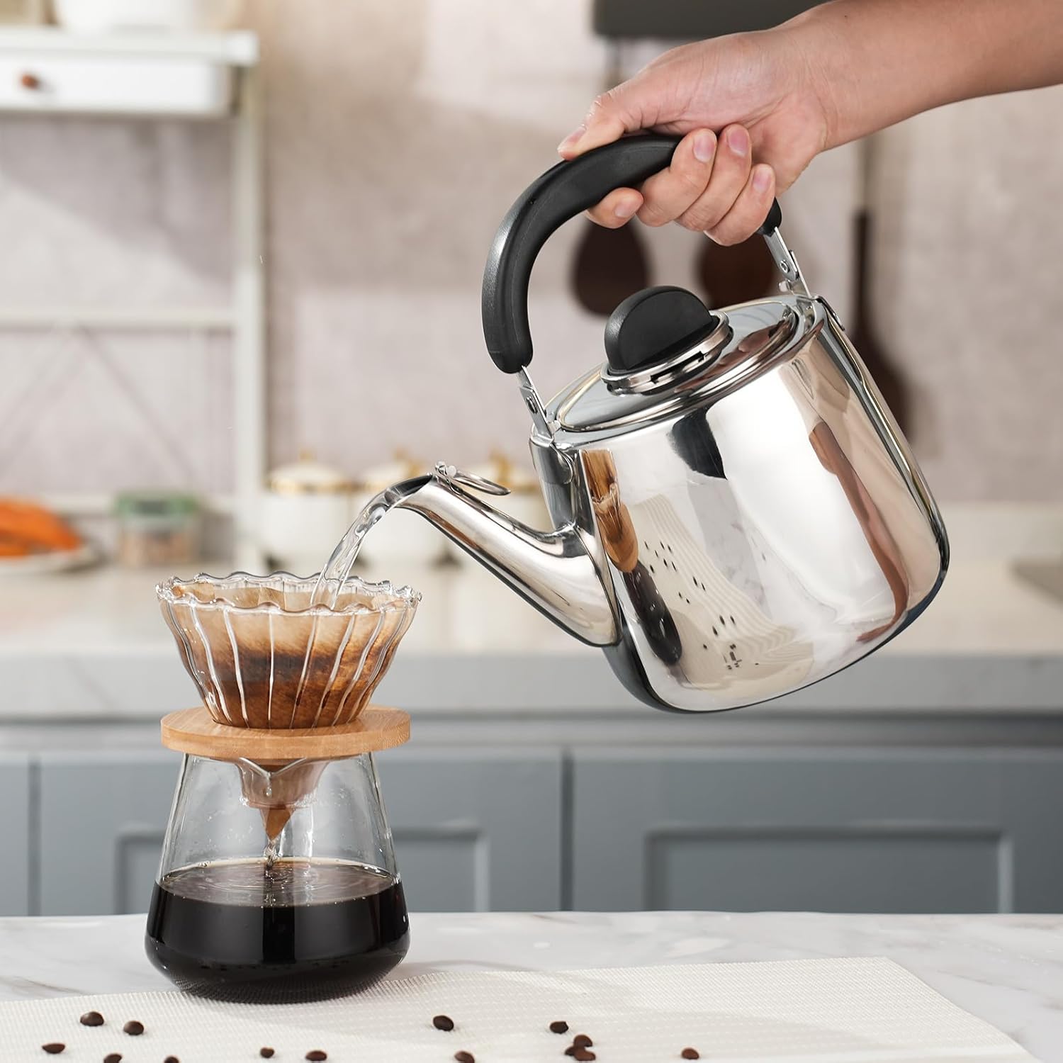- 【Exquisite Design】 The stovetop kettle exterior features a classic mirror gloss finish, giving our tea kettle a very minimalist and premium look. This stainless steel tea kettle comes with an easy to grip ergonomic handle that is cool to the touch. The lid of the kettle features a chirp function that provides you with a loud chirp when the water boils without having to worry about safety, effectively reducing safety hazards and preventing boilovers