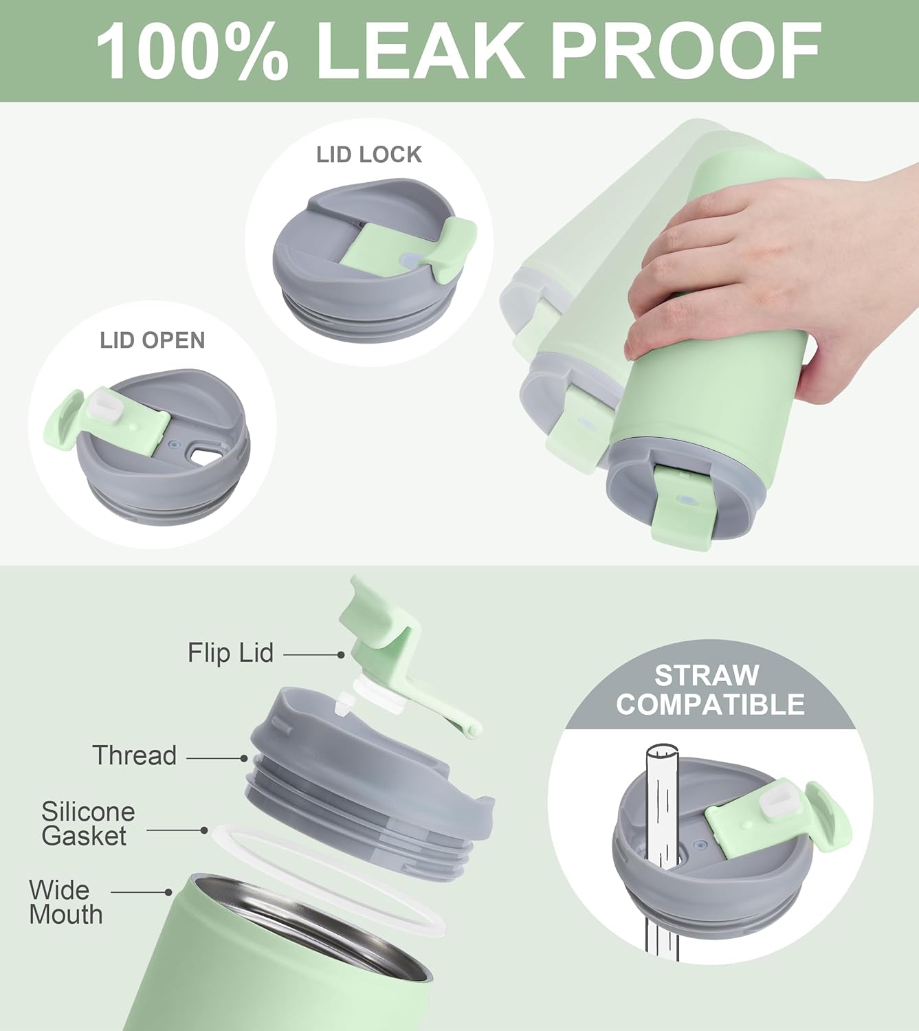 - Leak Proof Screw-on Lid: BPA Free , silicone gasket seals, easy sipping, straw friendly