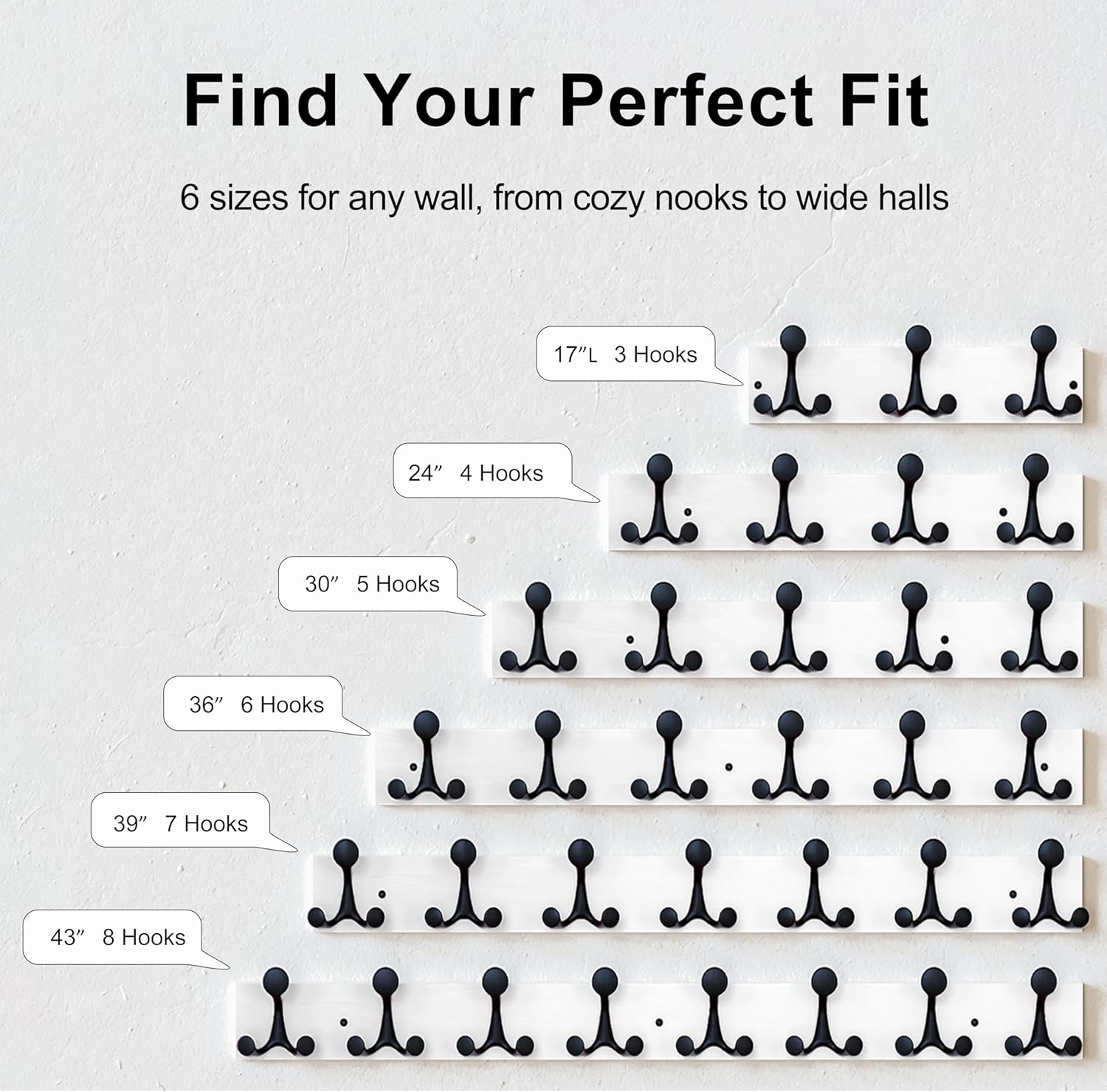 - 【43 Inches Long Wall Coat Rack】 It's just the right size for family, classroom or office, and holds all of their winter coats and jackets, backpacks and bags.