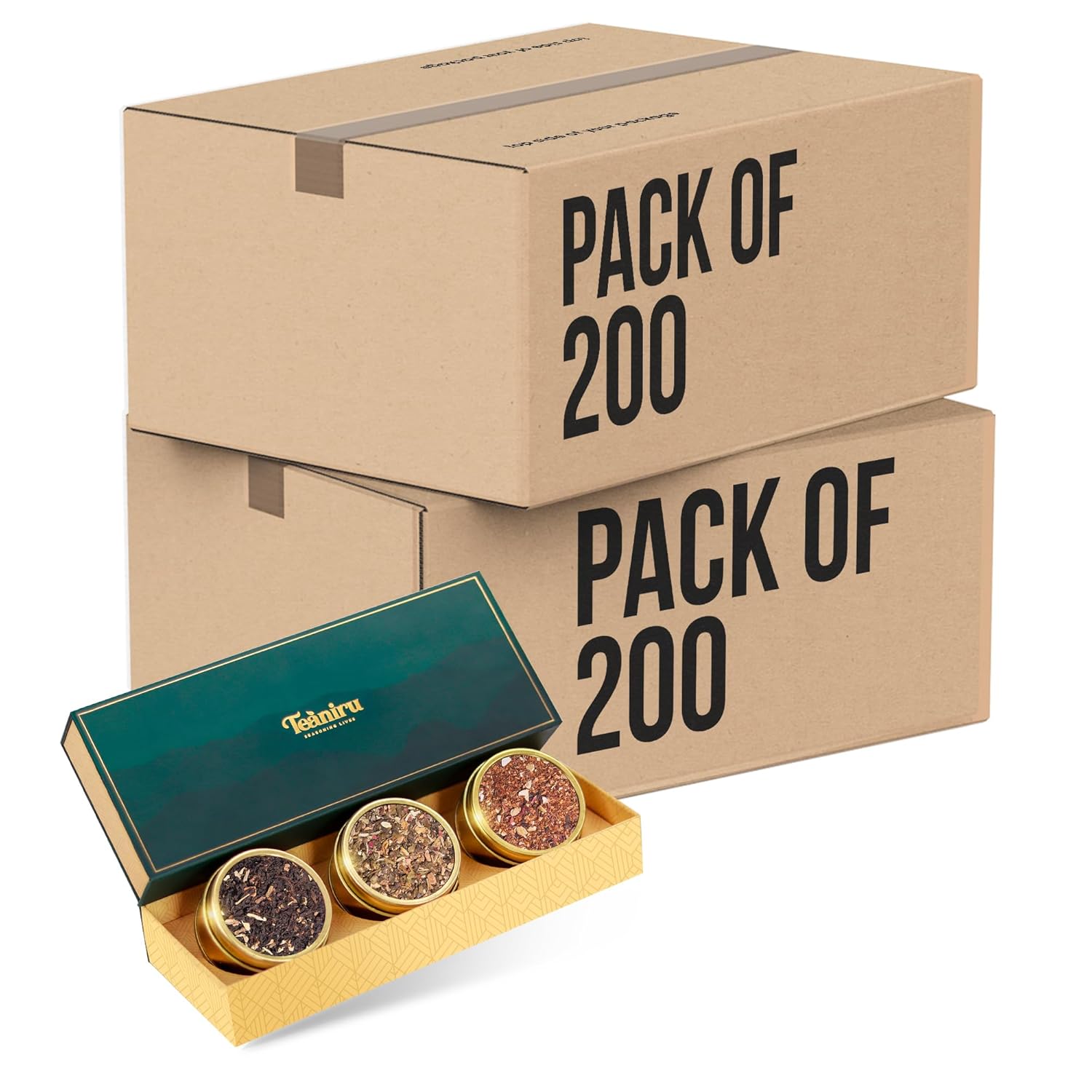 Teaniru, Grandeur Tea Collection – Pack of 200 | Loose Leaf Tea Sampler Gift | 3 Flavored Tea - Black, Herbal & Green Tea | Loose Leaf Tea Gift Set for Corporate Gifting
