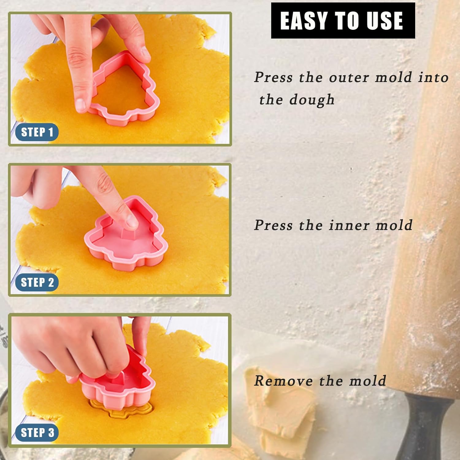 - 【Safe and Healthy】Made from high-quality PP material, these cookie cutters are non-toxic and safe for health. its design can not only keep the complete shape of cookies, but also create delicate surface details.Just one Press can easily cut out cookies of various cute shapes.