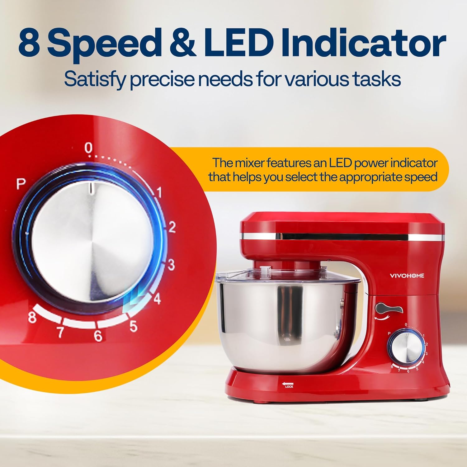 VIVOHOME 4.75 Quart Stand Mixer, 8 Speed Kitchen Electric Food Mixer, Household Stand Mixer for Baking, Cake, Bread with Beater, Dough Hook, Wire Whip and Egg Separator, Red