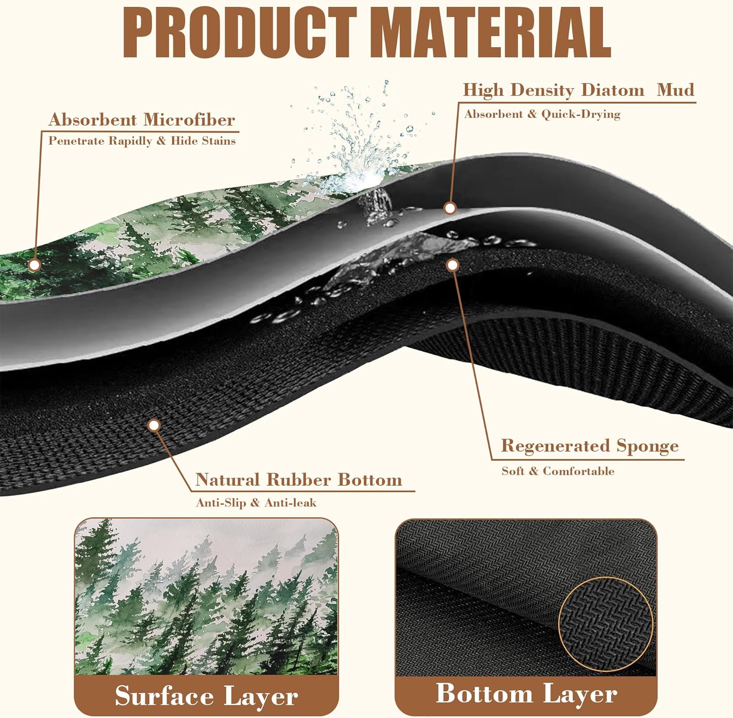 - 【Non-Slip Rubber Base】The bottom of the coffee bar mat has a non-slip textured natural rubber that can firmly grip the tabletop. Just place the coffee machine or cutlery on top, and the non-slip bottom will hold it firmly in place, also preventing liquids from seeping into the tabletop and leaving stains