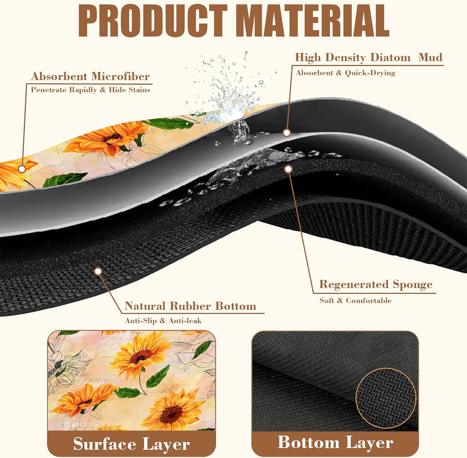 Dish Drying Mat Watercolor Sunflower Coffee Bar Mat for Countertop Absorbent Rubber Backed Hide Stain Dish Drainer Rack Pad Espresso Machine Cafe Table Dining Room Decoration 15.7 x 23.6 Inch