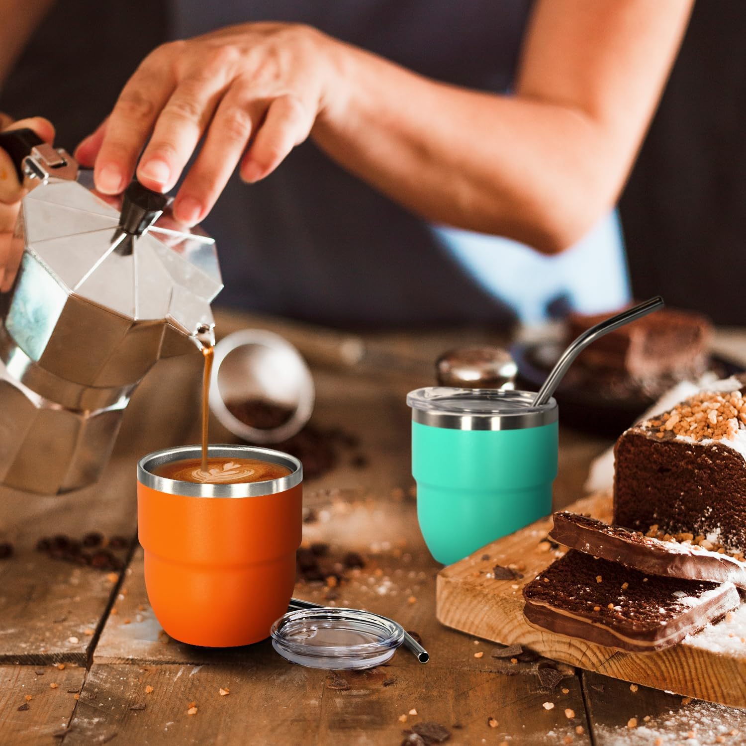 - LEAKPROOF DESIGN: Are you still dealing with accidentally spilled coffee that are hard to clean? Our espresso coffee cups have leak proof lids and stainless steel straws! Espresso coffee shots cup are stackable to save space in the kitchen. Our 4oz stackable cups are ideal as espresso to go cups when you are on the go or traveling.