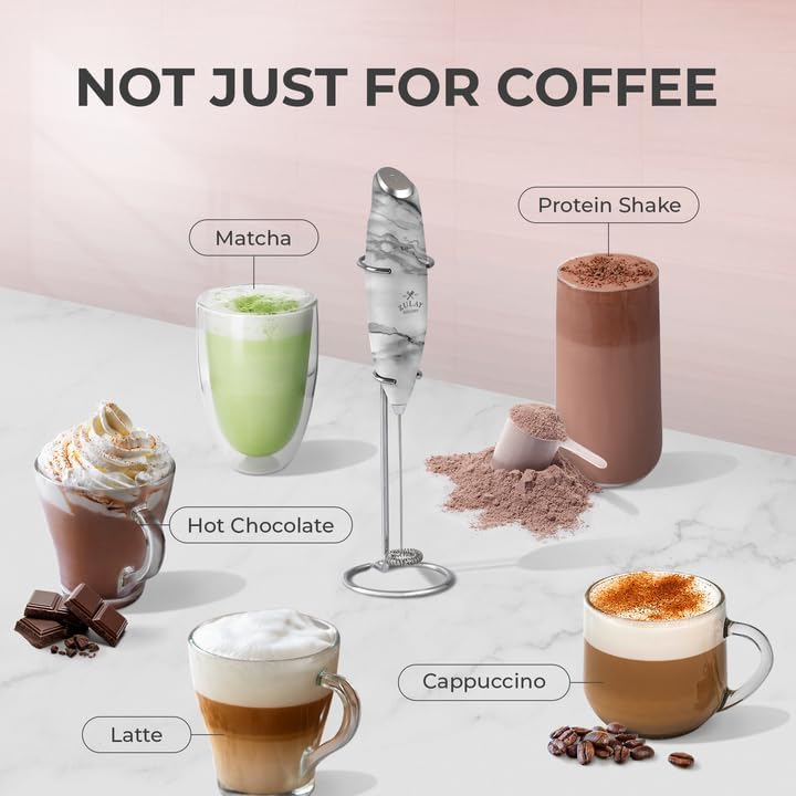 - PROVEN AND TRUSTED QUALITY: Made with high-quality materials, this coffee frother handheld works on all types of milk—whole, almond, soy, cashew, or cream. Backed by the Zulay Lifetime Guarantee, it won’t rust or break.