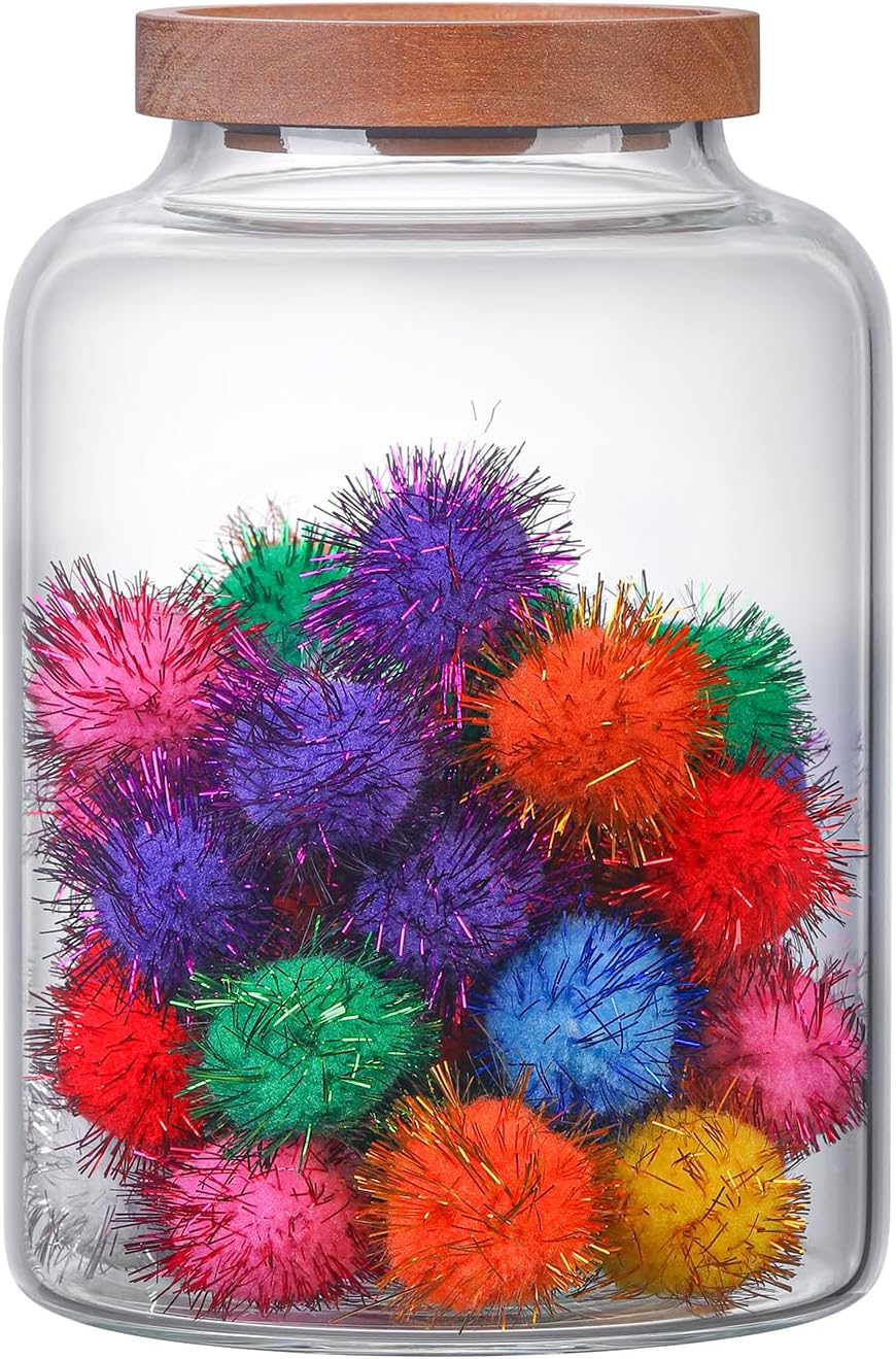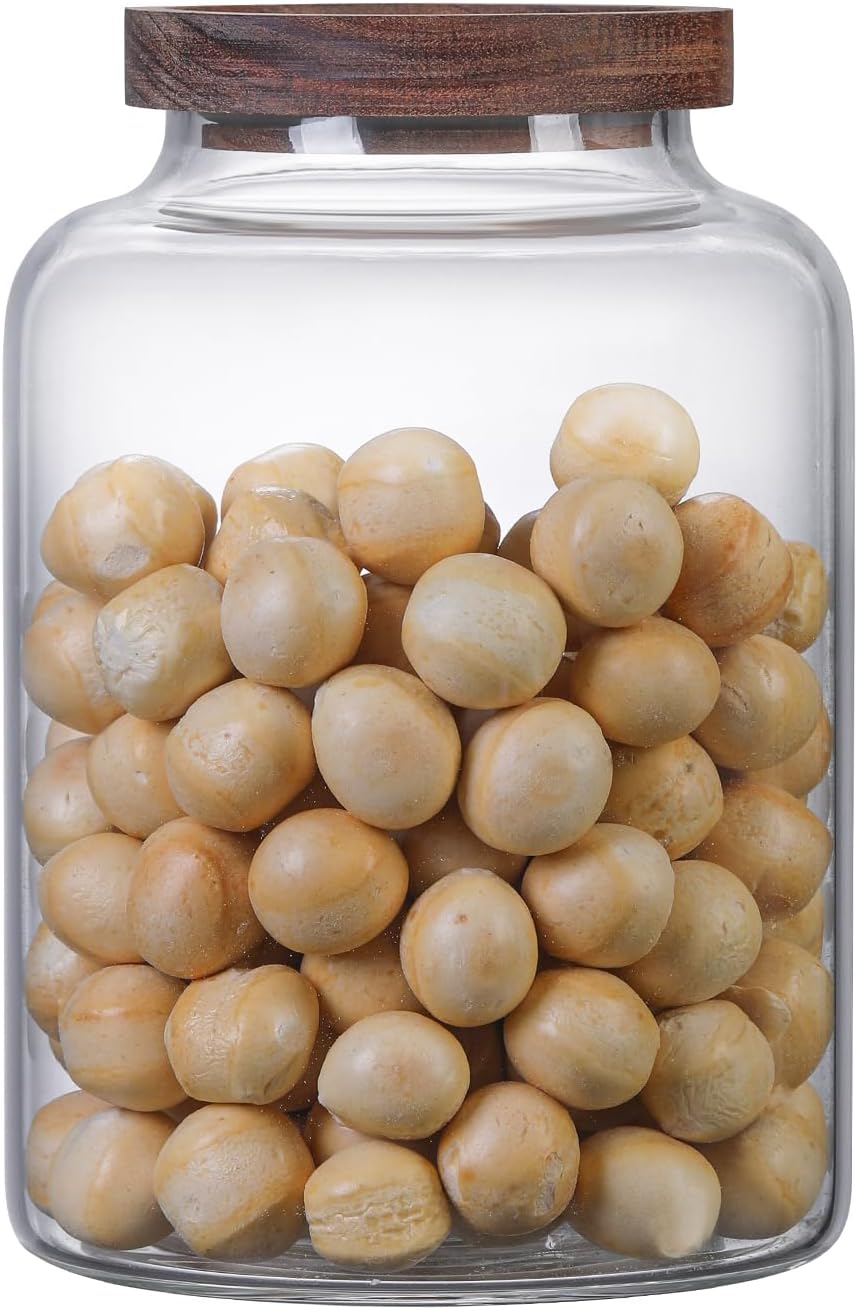 Large Glass Jar with Wooden Lid Glass Sugar Containers Kitchen Canisters Pantry Glass Food Storage Container for Candy Coffee Bean Cereal Flour Cookies